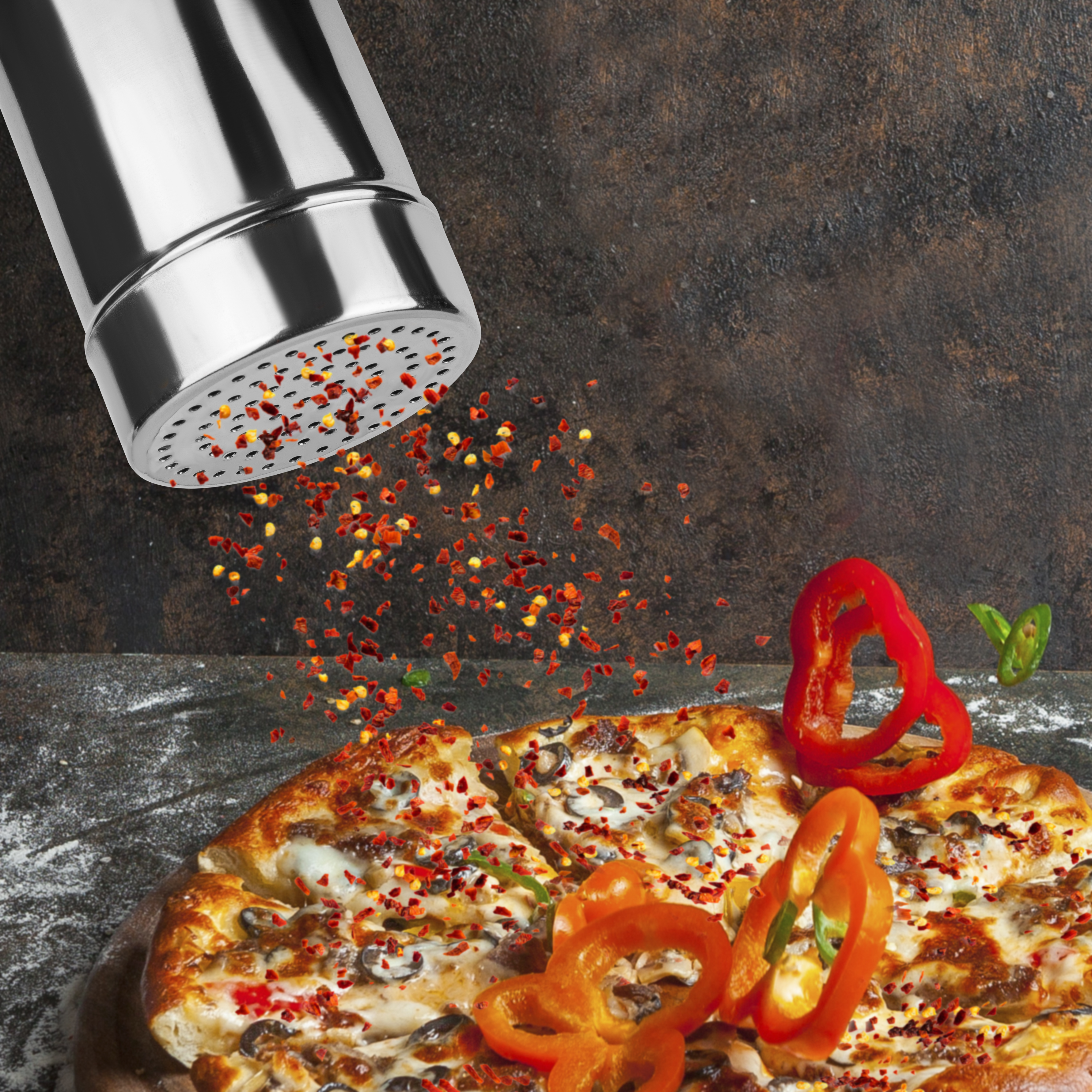 Steel-function, strødåse med store huller og plastik låg – nem og præcis drysning til køkkenet