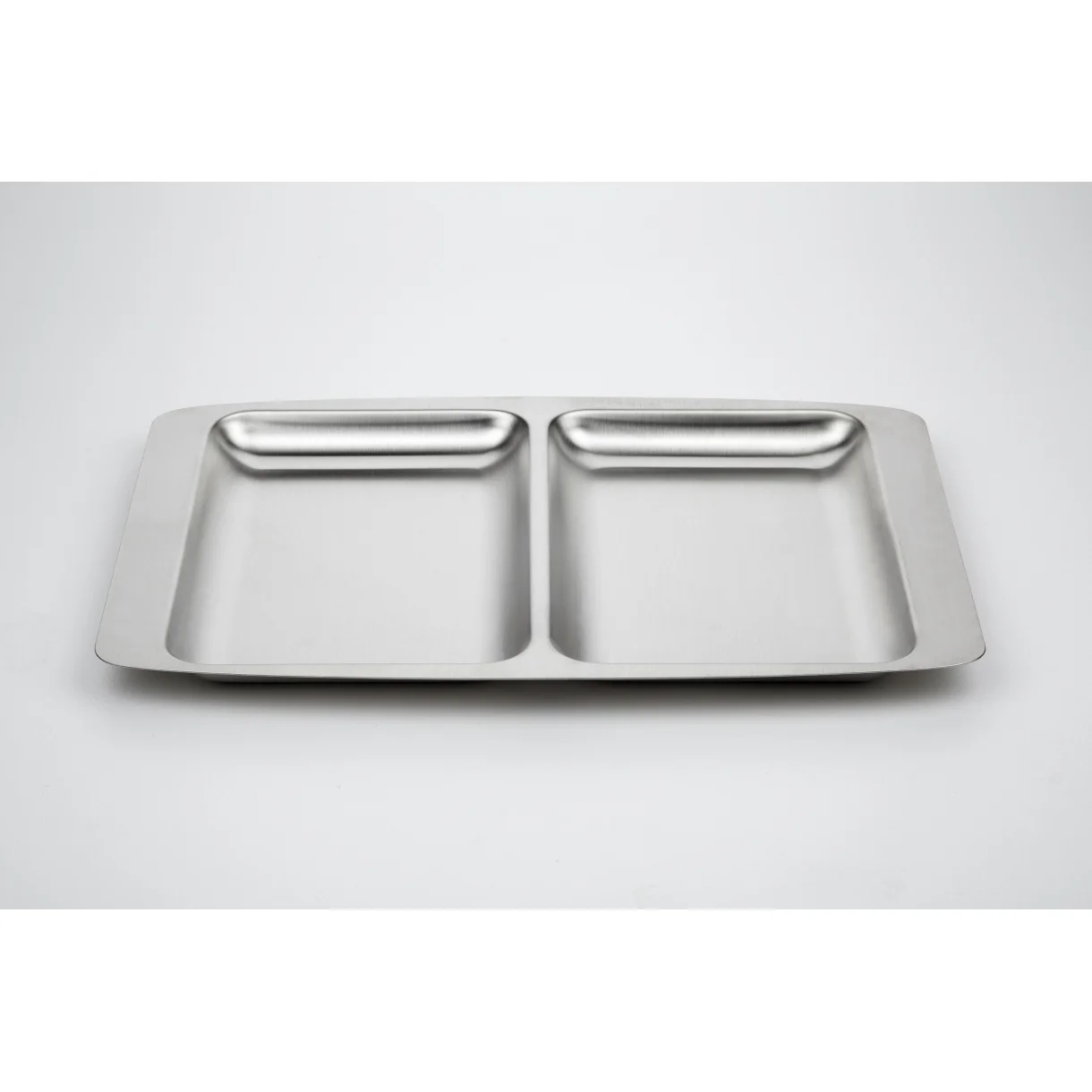 Den todelte opdeling giver mulighed for at adskille forskellige ingredienser eller småting uden sammenblanding. Det glatte rustfri stål gør fadet nemt at rengøre og modstandsdygtigt overfor pletter og lugt. Brug det i køkkenet til servering eller som en smart opbevaringsløsning på bordet eller i entréen.