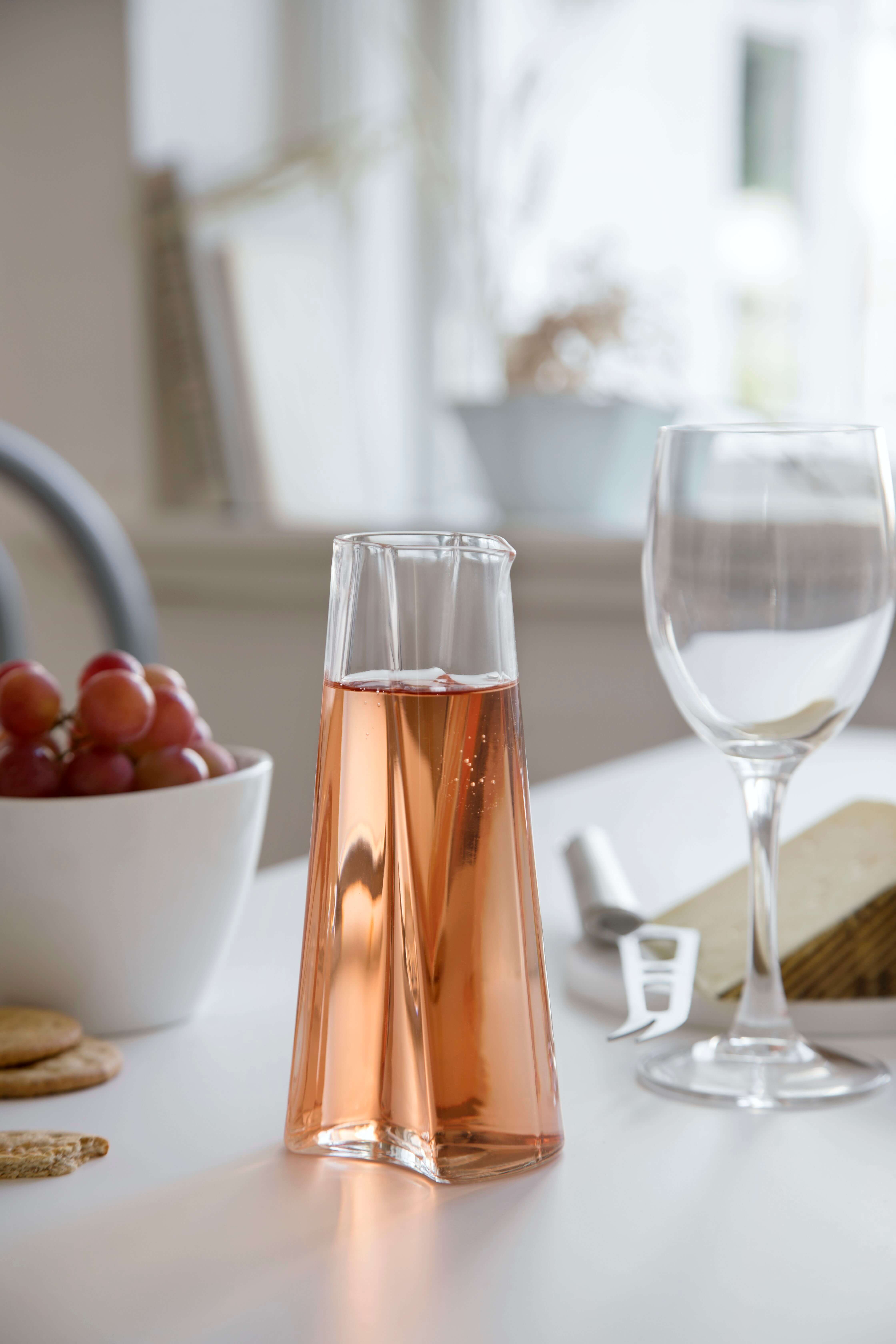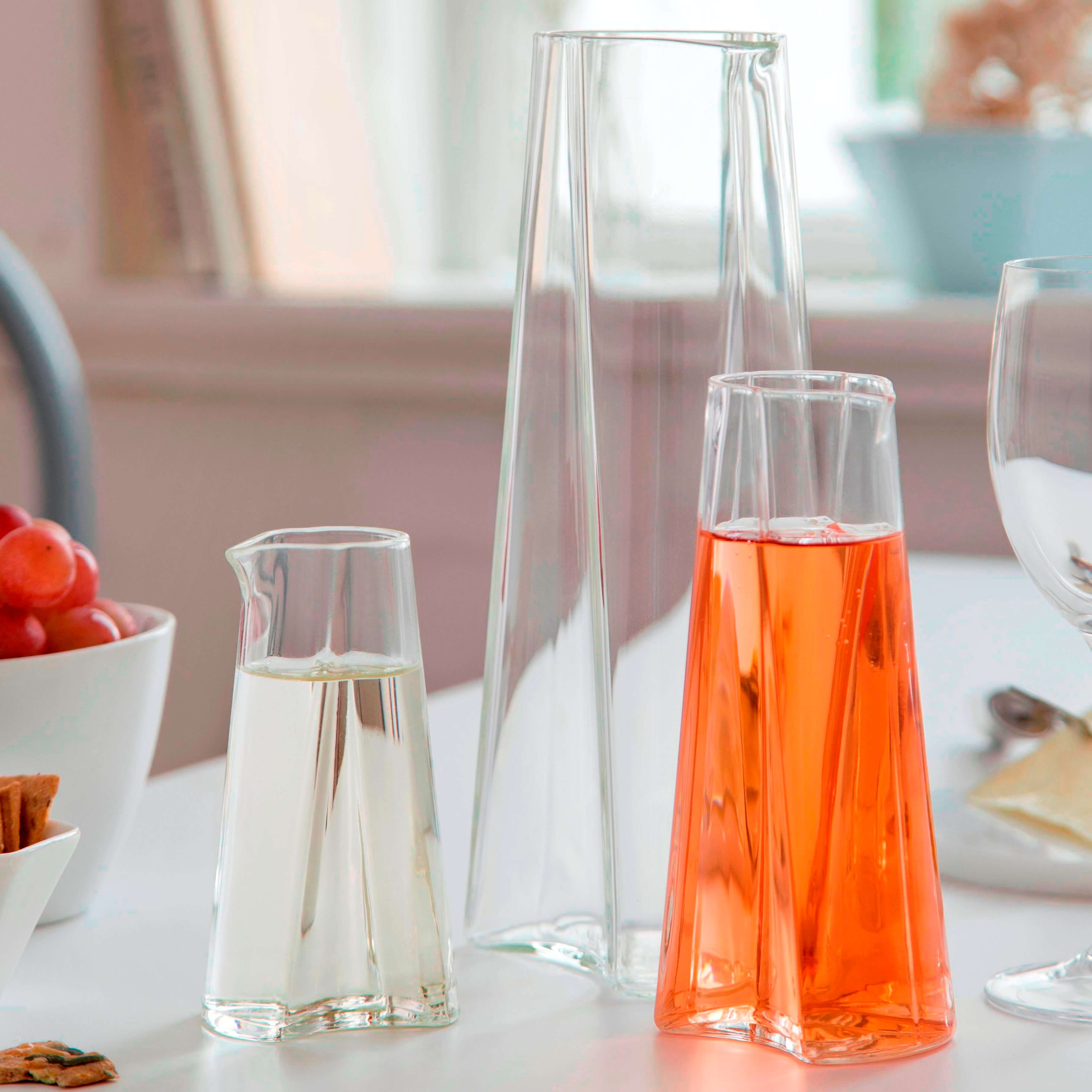 Formen på kanden sikrer et godt og sikkert greb, så du let kan hælde uden at spilde. Den gennemsigtige glasflade giver et klart overblik over indholdet, og den robuste kvalitet sikrer, at kanden tåler daglig brug. Perfekt til både kolde drikke og servering ved bordet.