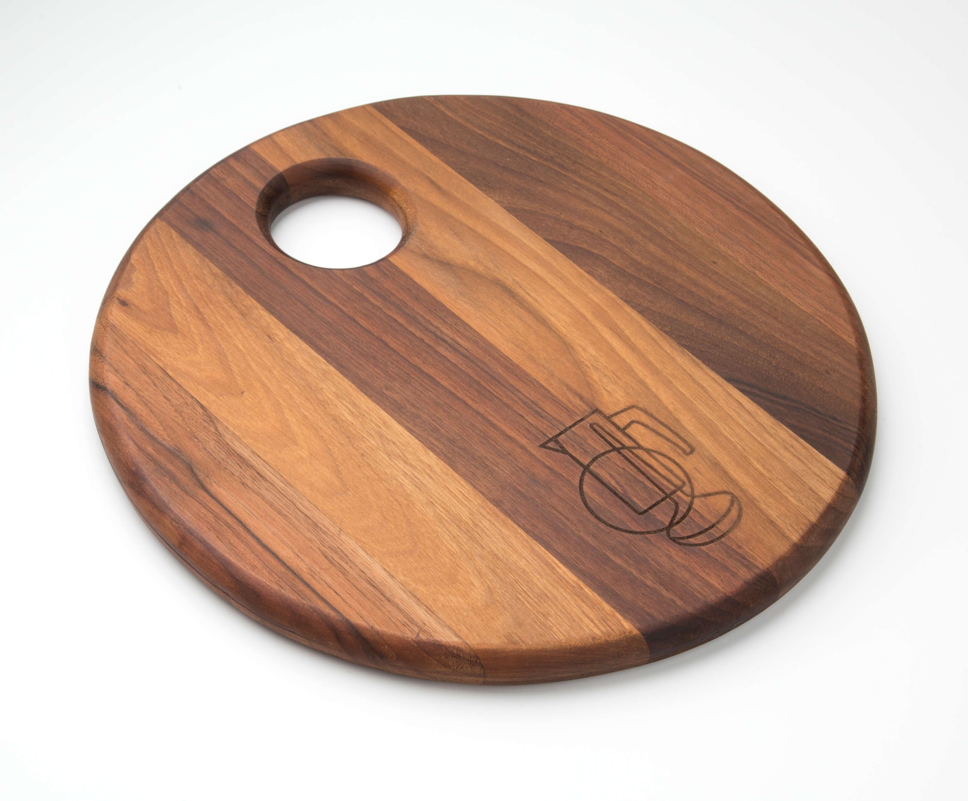 Steel-function, skærebræt rundt i valnød  elegant og funktionelt til køkkenet