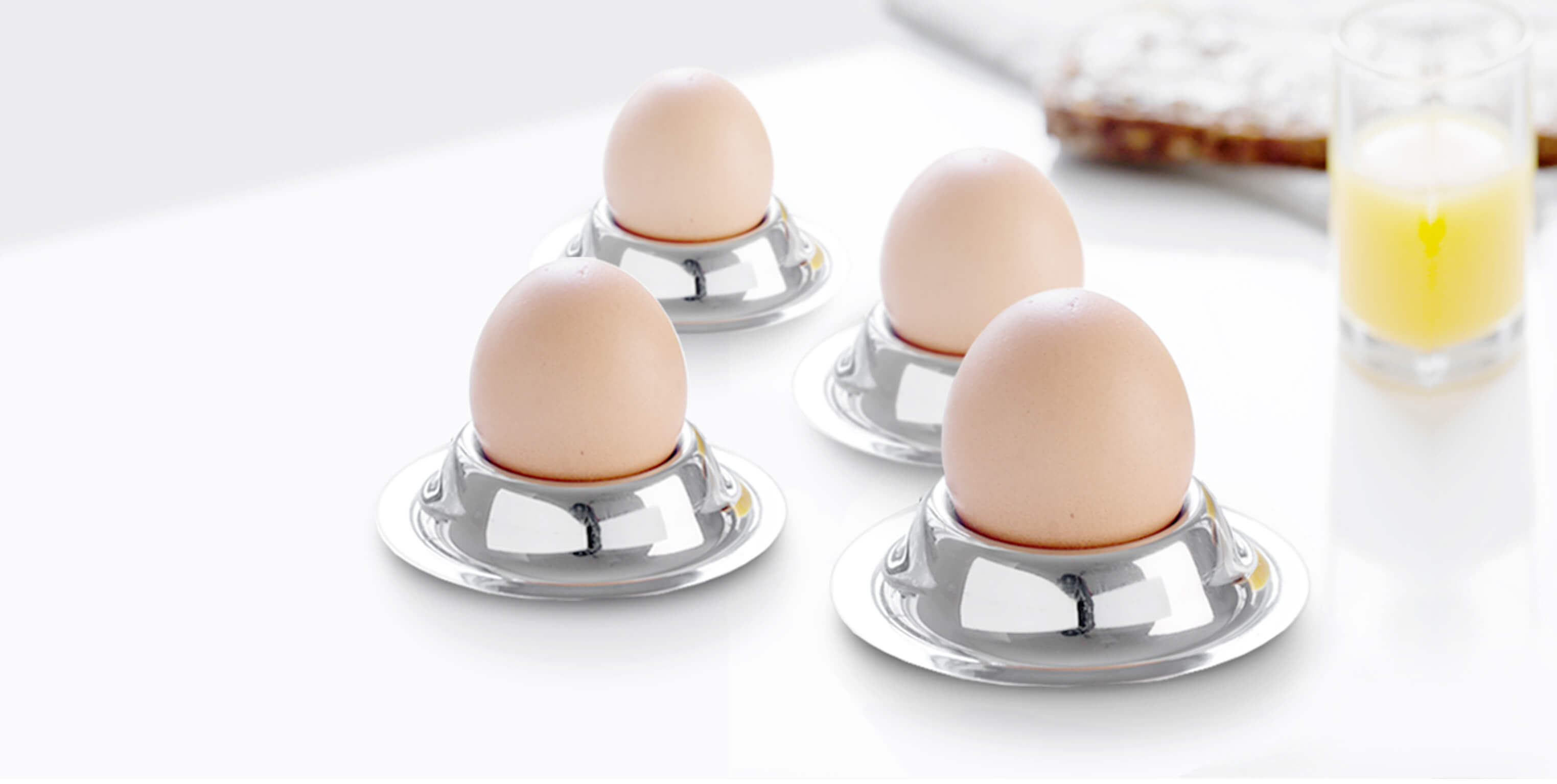 Steel-function æggebæger rundt, sæt 4 stk – stilfuld servering til morgenbordet