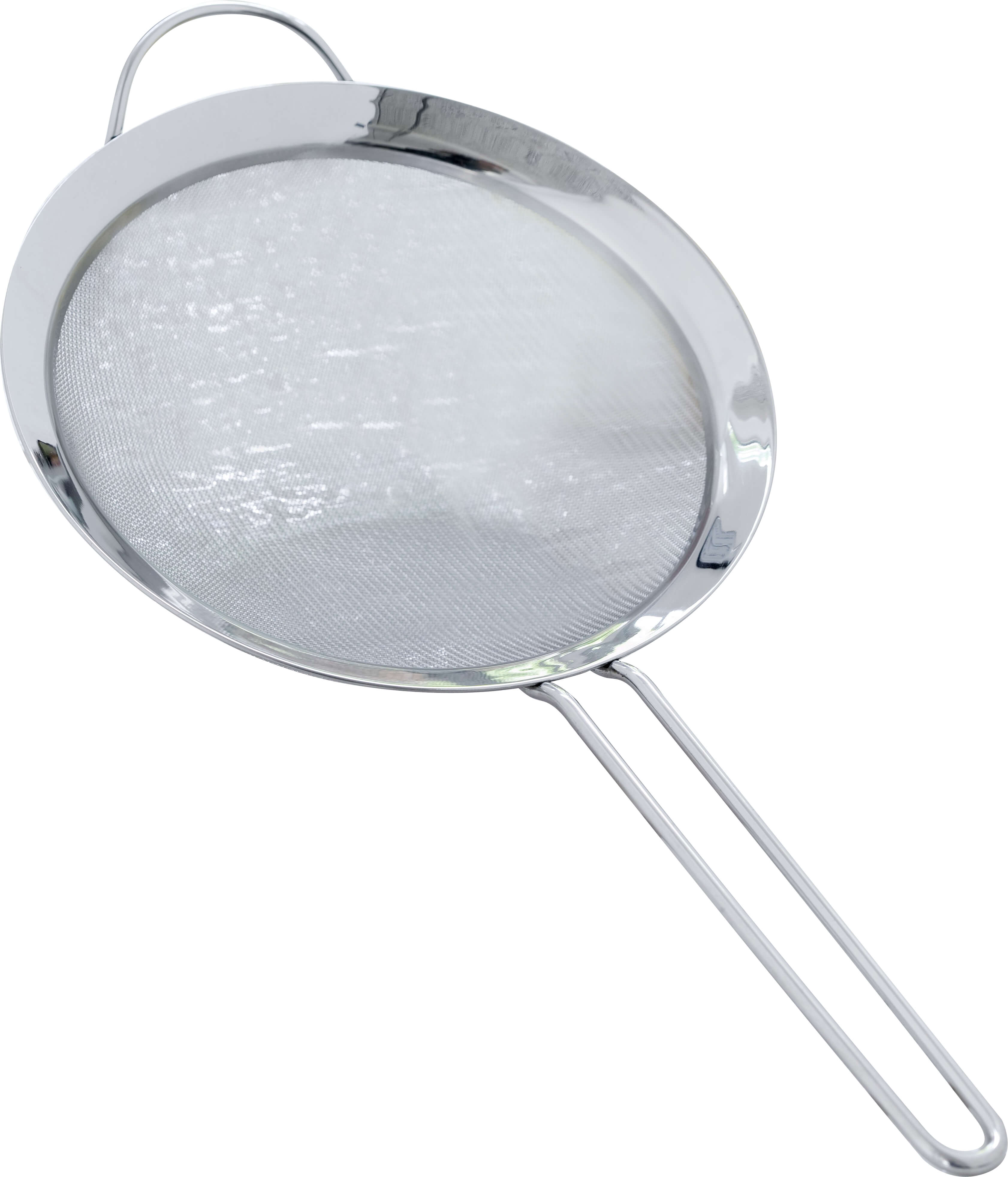Det dobbelte net sikrer en jævn sigtning og forhindrer klumper i dejen eller saucen. Den solide konstruktion i rustfrit stål giver lang holdbarhed og gør rengøringen let. Trådsigtet er ideelt til at sigte mel, flormelis, krydderier eller til at skylle små ingredienser som quinoa og ris. Den brede kant gør det nemt at placere sigtet på forskellige skåle og gryder, så du kan arbejde mere effektivt i køkkenet.