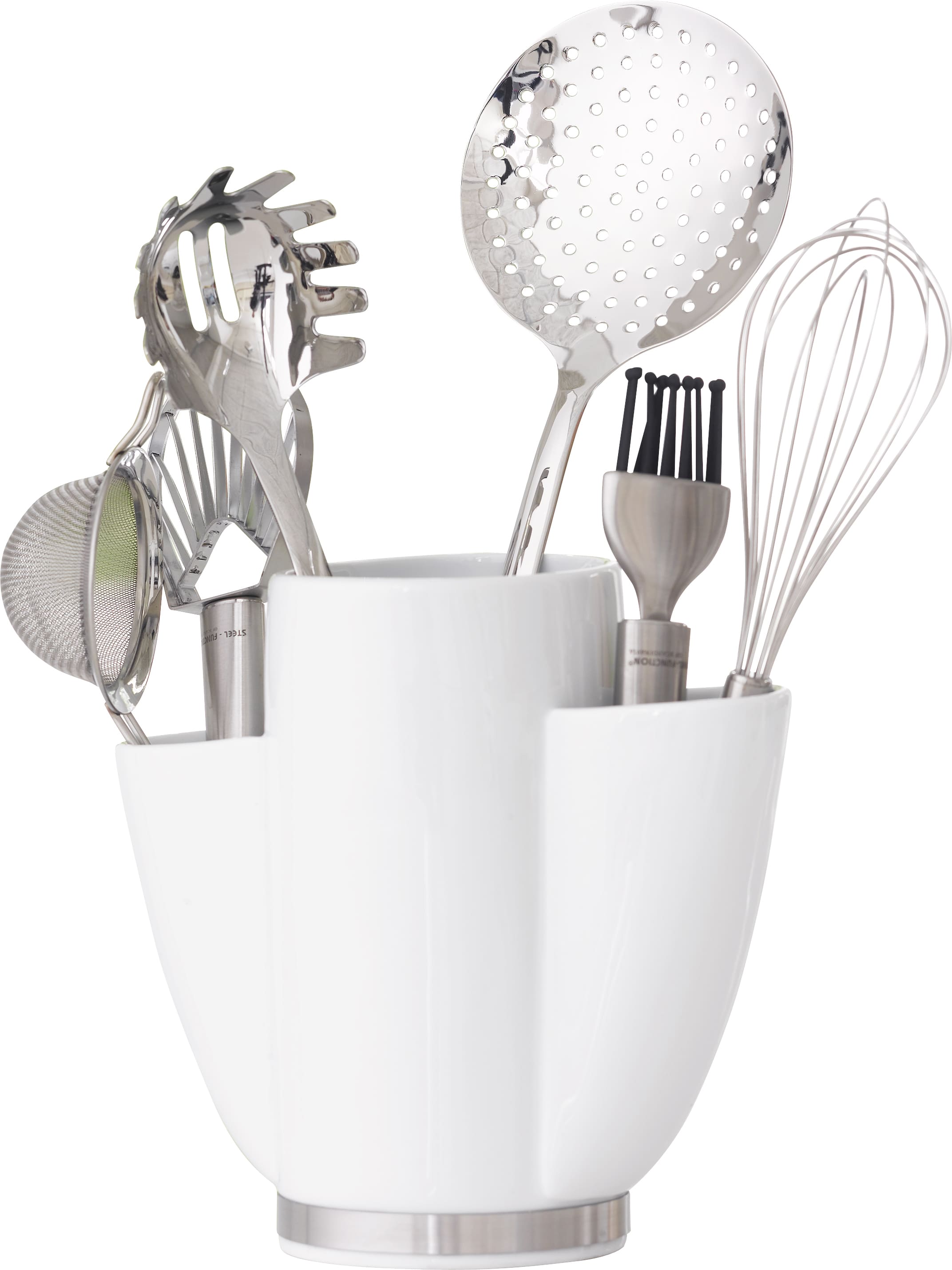 Steel-function, redskabsholder porcelæn 3-rum – elegant opbevaring til køkkenredskaber
