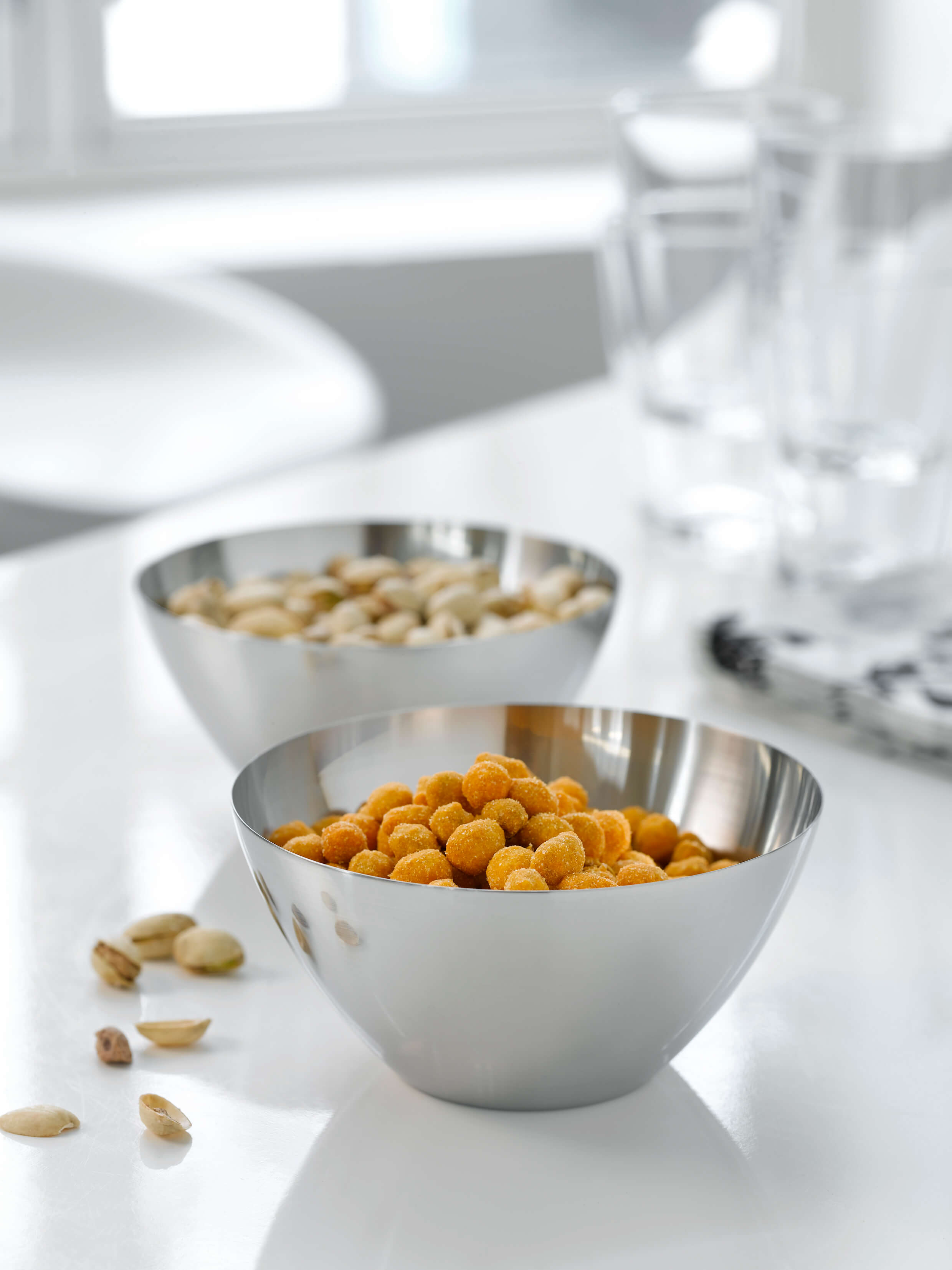 De to skåle er ideelle til servering af alt fra nødder og oliven til frisk salat eller dip. Deres størrelse gør dem nemme at håndtere, og det rustfri stål sikrer, at de tåler daglig brug uden at miste glansen. Den blanke overflade gør rengøringen enkel og hurtig, så du kan fokusere på at nyde maden og samværet.