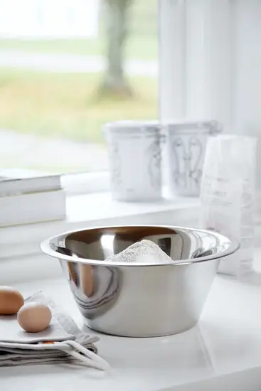 Den blankpolerede overflade gør skålen nem at rengøre og modstandsdygtig over for pletter og lugt. Skålens solide konstruktion sikrer stabilitet under brug, mens den lette vægt gør den nem at håndtere. Den store volumen på 4,2 liter giver plads til større portioner, så du kan arbejde effektivt og ubesværet.