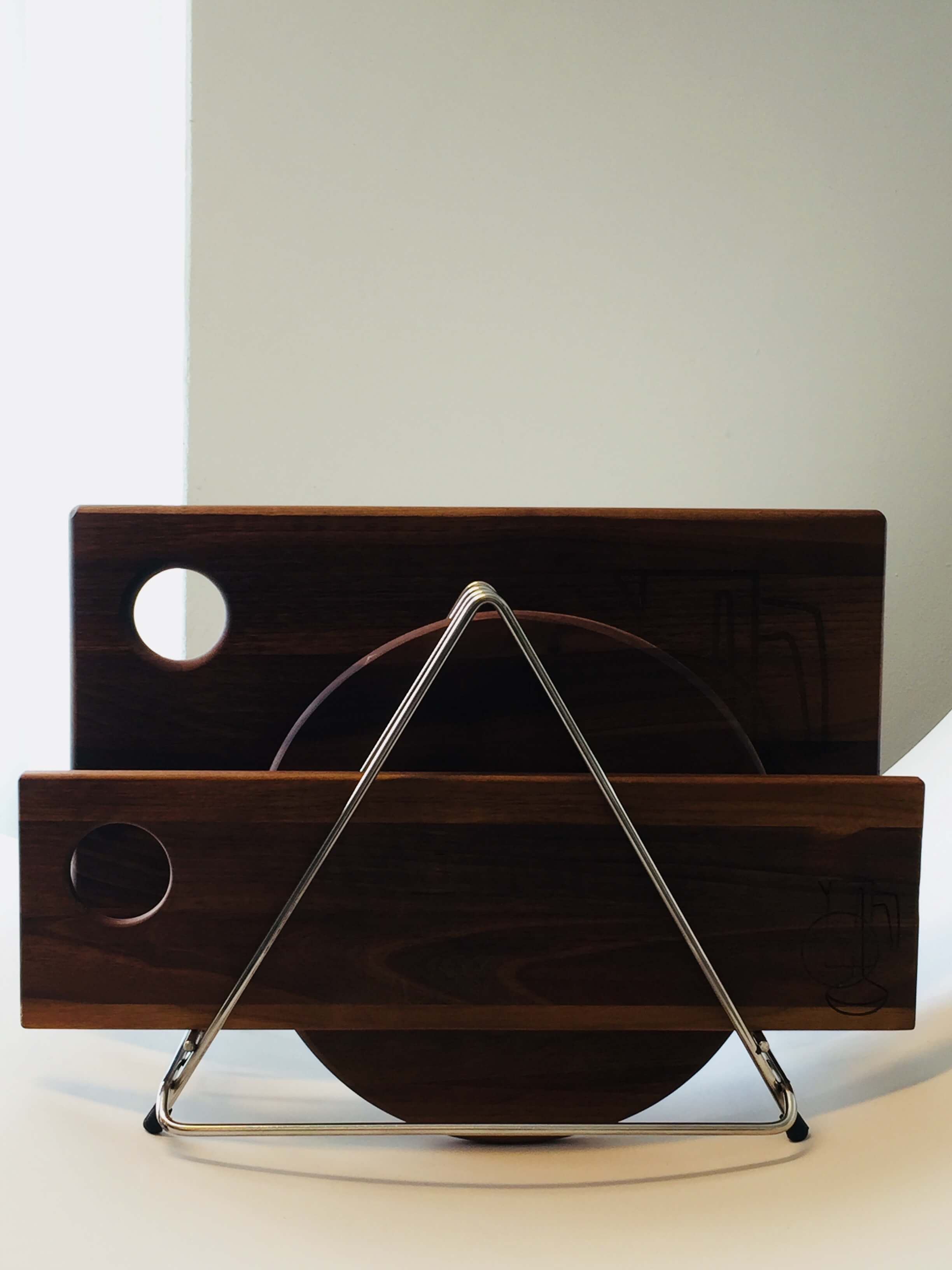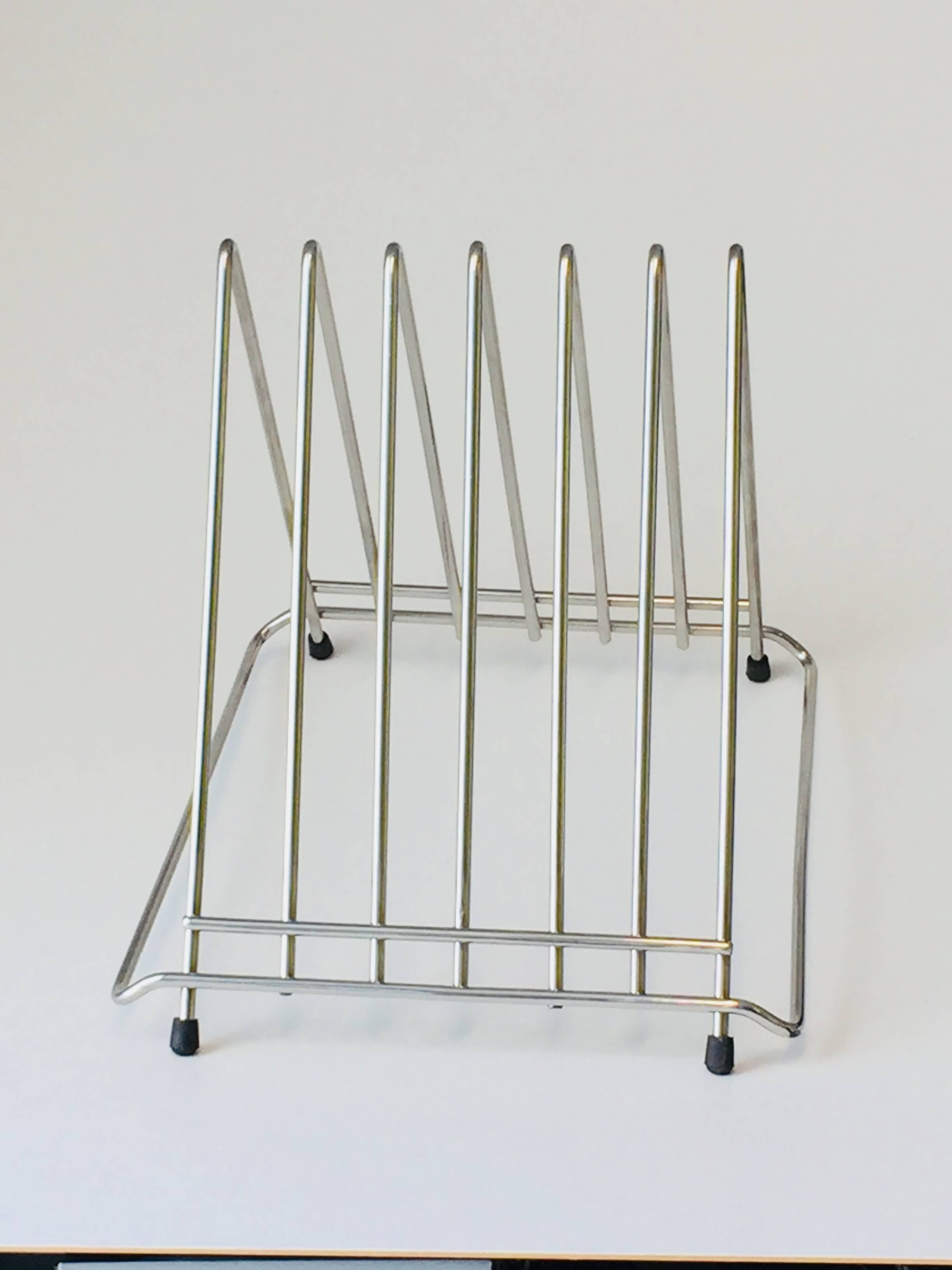 Skærebrætsholderen hjælper med at skabe orden i køkkenet ved at samle dine skærebrætter ét sted. Den holder dem adskilt, så de ikke ridser hinanden, og gør det let at opbevare både små og store brætter uden rod på bordet eller i skabet.