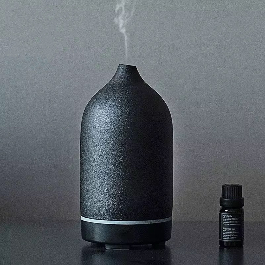 Volant duft diffuser i mat sort er en stilren, håndlavet stendiffuser, der forvandler rummet med en blid, kølig dufttåge. Den minimalistiske keramikoverflade passer ind i enhver indretning, mens ultralydsteknologien spreder æteriske olier jævnt for ro, fokus og velvære i hverdagen.