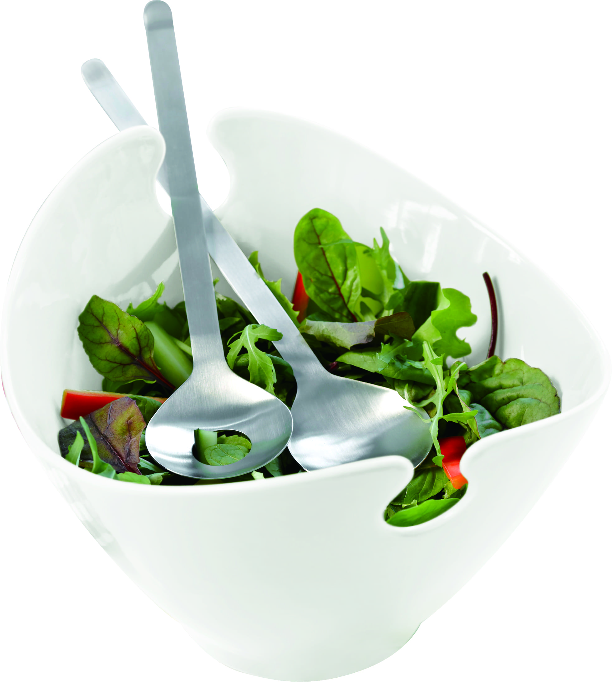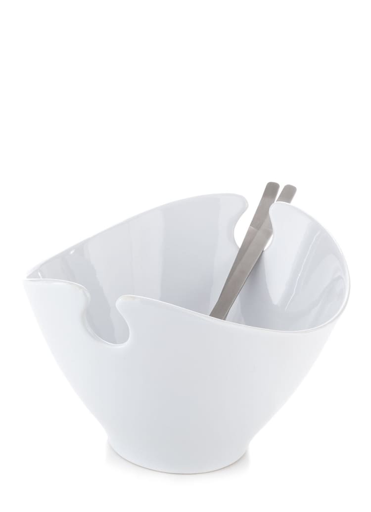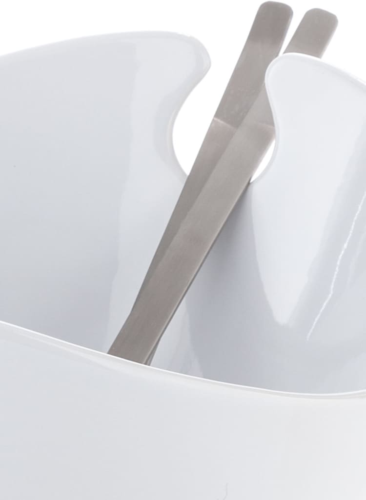 Steel-function, hvid salatskål med bestik – elegant og praktisk til store salater