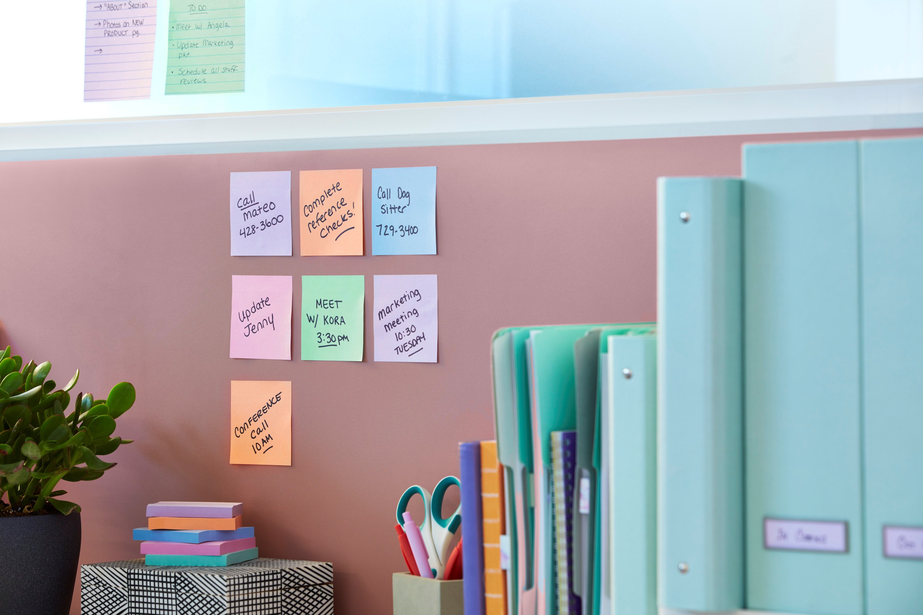Disse Post-it notes med ekstra stærk klæbeevne er ideelle til både kontor, hjemmearbejde og hverdagsplanlægning. De sidder sikkert fast på lodrette overflader som computerskærme, vægge, døre og opslagstavler, hvilket gør dem perfekte til huskelister, to-do lister, beskeder og idéer.