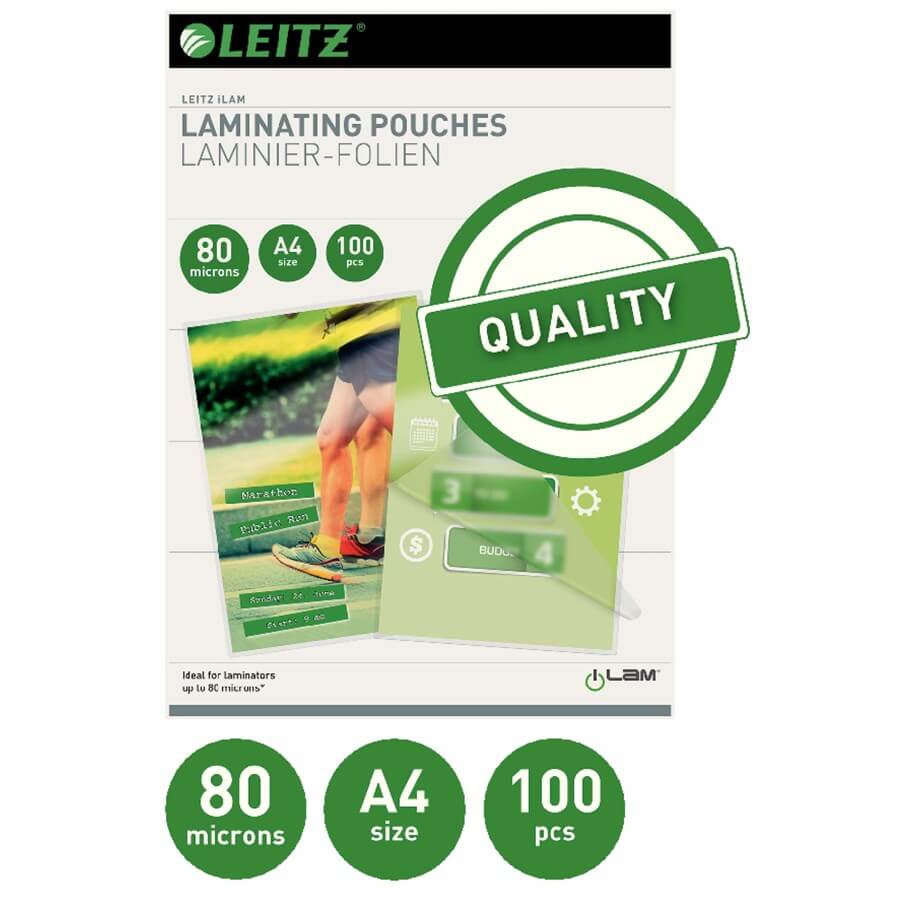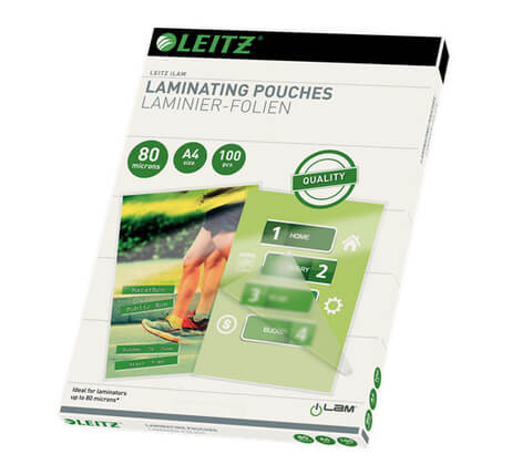 Bestil Leitz lamineringslommer A4 80 µm glans – pakke med 100 stk i dag og få dine dokumenter flot fremvist og godt beskyttet.