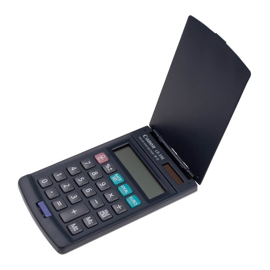 | Ekstra information | Canon LS-39E er en 8-cifret lommeregner med stort display og et hårdt dæksel, der kan åbnes 360 grader (åbnes opad). Der kan være plads til firmalogo på dækslet |