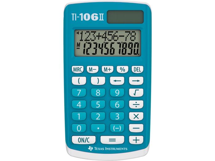 TI - 106 II understøtter de fire grundlæggende regningsarter, overholder regnearternes hierarki (AOS), har tast til fortegnsskift (+/-), hukommelsesfunktion, procent og kvadratrod – og er drevet af solcelle + batteri for fleksibel brug. :contentReference[oaicite:2]{index=2}