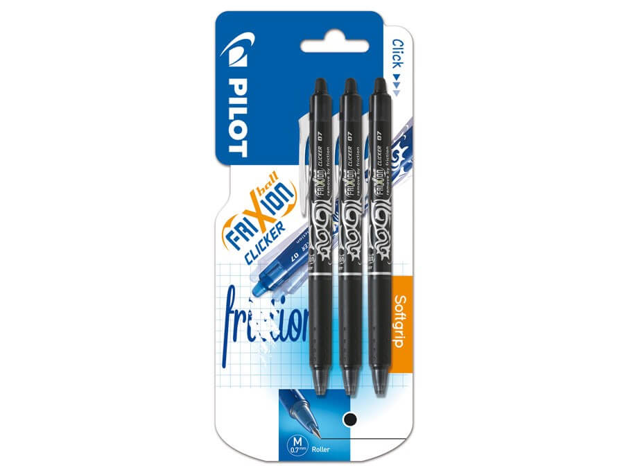 Pilot Frixion Clicker 0,7 – Udviskbar Kuglepen i 3 stk, Sort