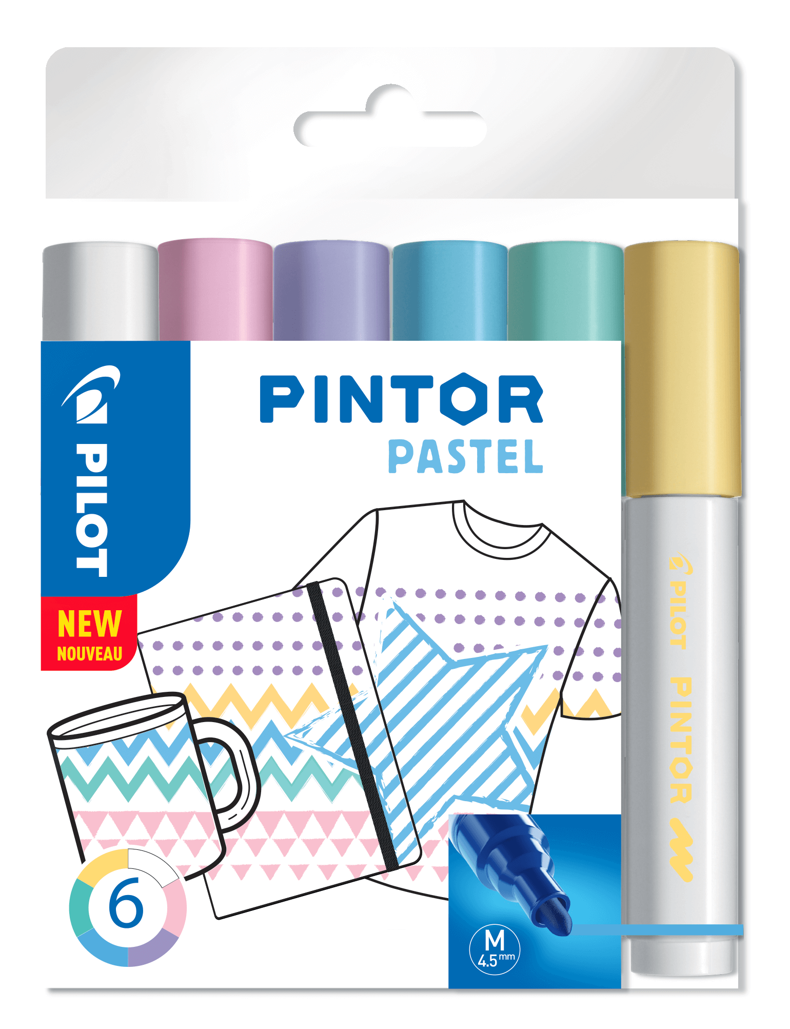 Pilot Marker Pintor Medium Pastel Mix 1,4 DIY-pen, 6 stk – kreative pastelfarver til dine projekter