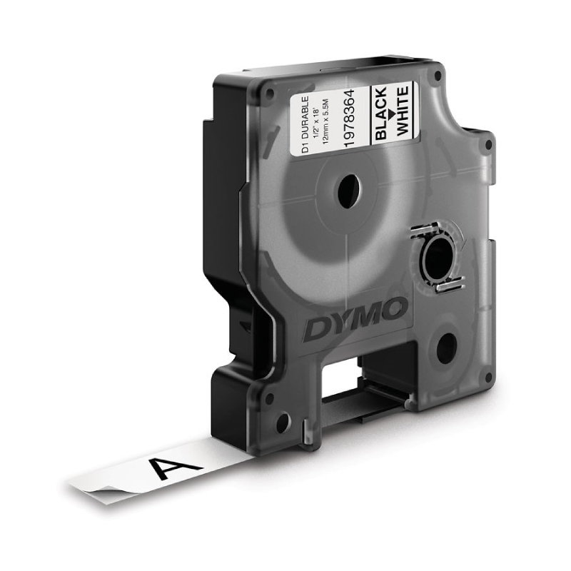 Dymo Tape D1 Extra stærk 12mmx5,5m sort/hvid – holdbar og tydelig mærkning