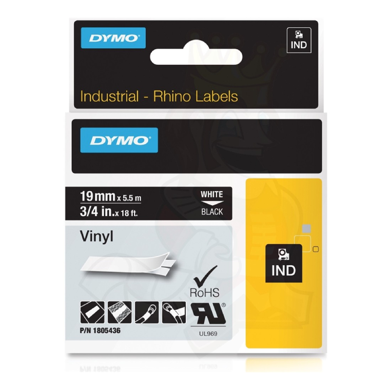 Dymo Tape Rhino 19mmx5,5m vinyl sort/hvid