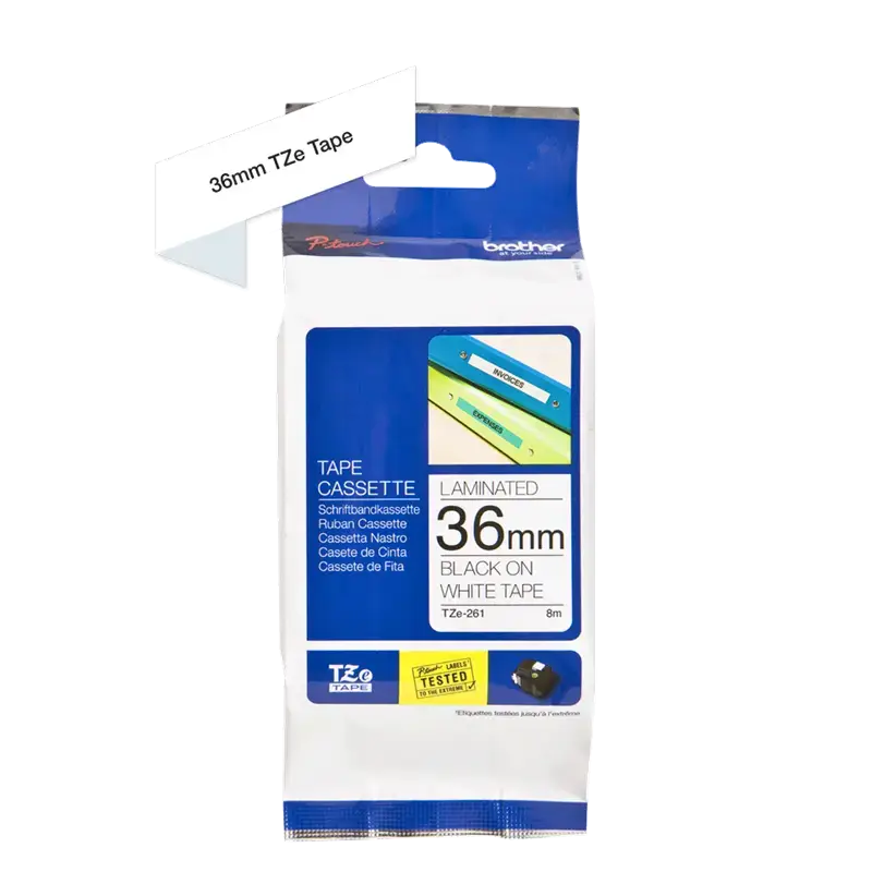 Brother TZe tape 36 mm x 8 m black / white – holdbar og tydelig mærkning til dine labelprintere