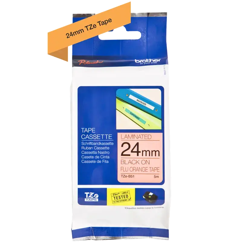 Brother TZe tape 24 mm x 8 m black / neon orange – holdbar og tydelig mærkning