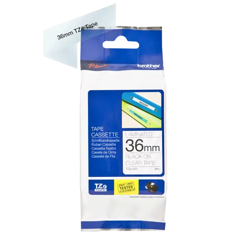 Brother TZe tape 36 mm x 8 m black / clear – holdbar og tydelig mærkning