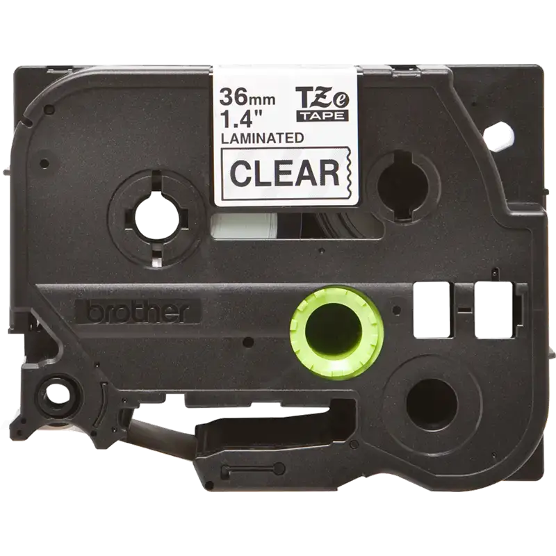 Vælg Brother TZe tape 36 mm x 8 m black / clear for pålidelig og holdbar mærkning, der gør det nemt at organisere og identificere dine ting effektivt.