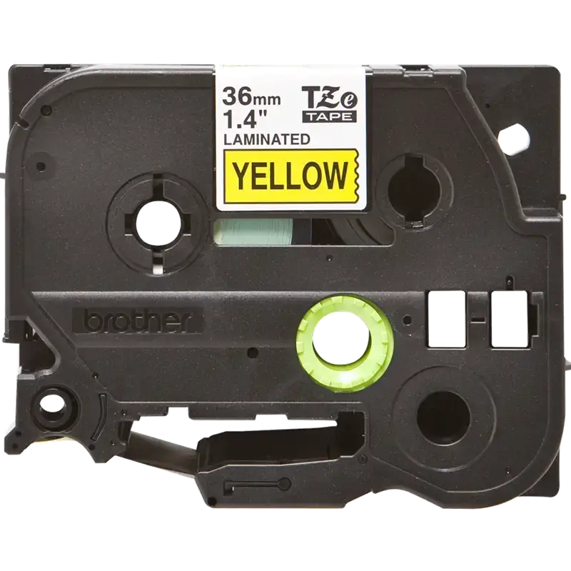 Vælg Brother TZe tape 36 mm x 8 m i sort/gul for at skabe klare, holdbare og professionelle labels, der gør organisering og mærkning både nem og effektiv.