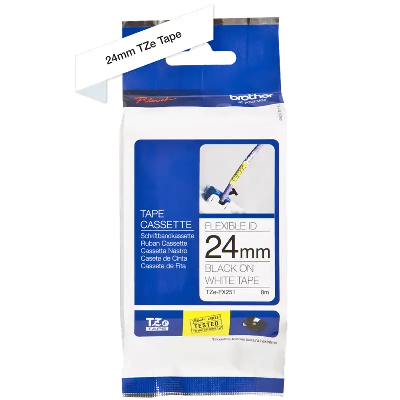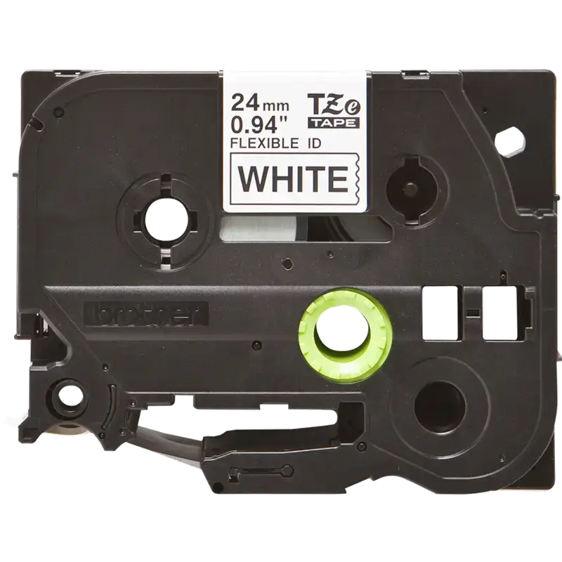 Brother TZe tape 24 mm x 8 m – fleksibel sort/hvid label til alsidig mærkning