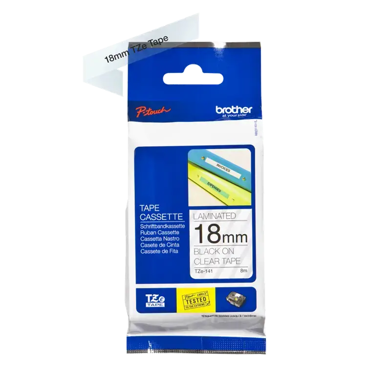 Brother TZe tape i størrelsen 18 mm x 8 m med sort tekst på klar baggrund er det ideelle valg til præcis og holdbar mærkning. Tapen er designet til at fungere perfekt med Brother labelprintere og sikrer skarpe, letlæselige labels, der tåler både slid og daglig brug. Den klare tape med sort print giver et professionelt og diskret udtryk, som passer til mange forskellige anvendelser – både i hjemmet, på kontoret eller i industrien.