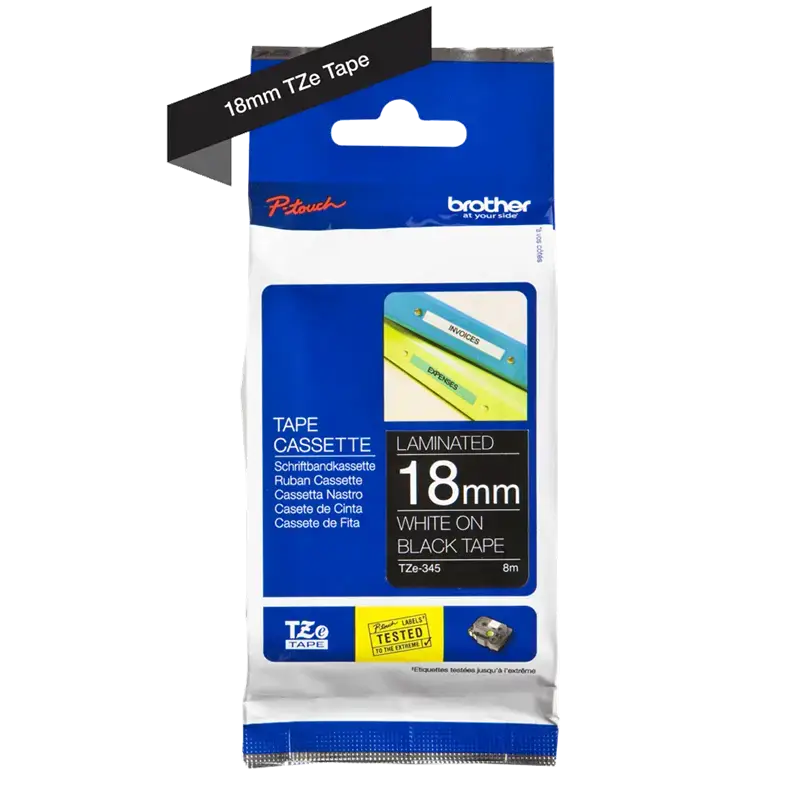 Vælg Brother TZe tape for en pålidelig og professionel mærkningsløsning, der hjælper dig med at holde styr på tingene med stil og funktionalitet.