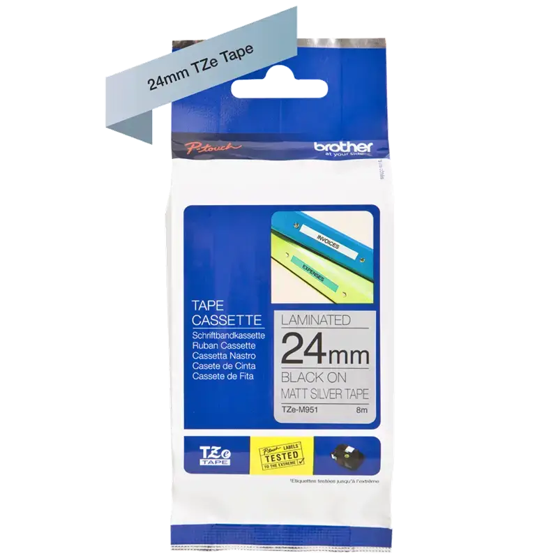 Brother TZe tape 24 mm x 8 m black / silver mat – holdbar og professionel label tape