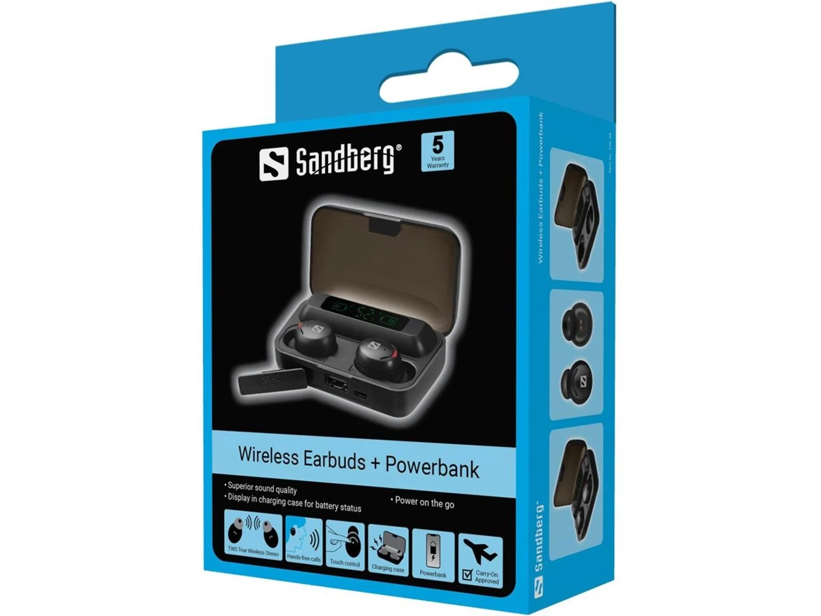 Sandberg Bluetooth Earbuds + Powerbank – trådløse ørepropper med opladningsetui og powerbank