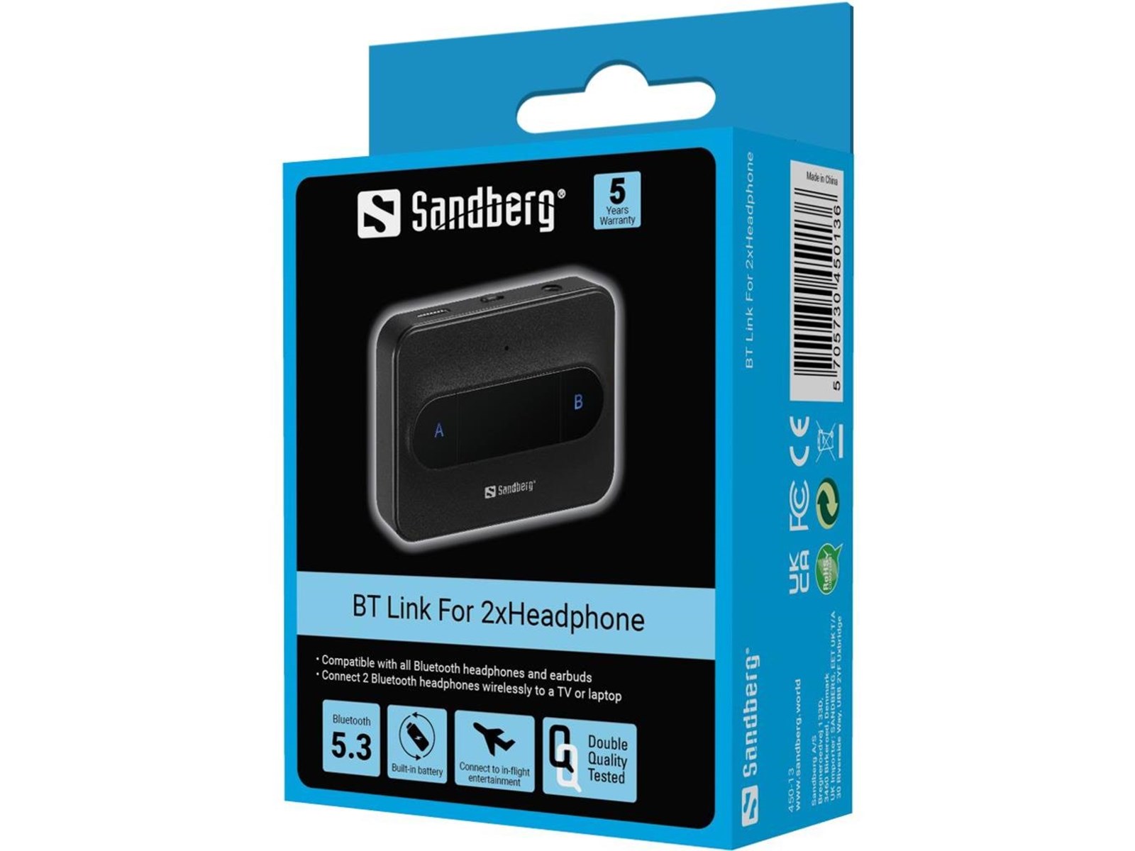 Sandberg Bluetooth Link For 2xHeadphone  Trådløs lyd til to hovedtelefoner