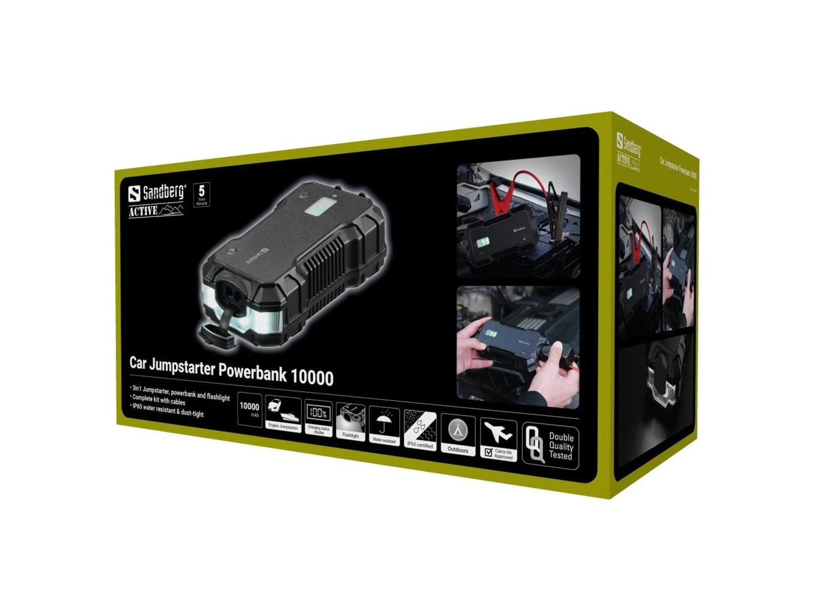 Med Sandberg Jumpstarter Powerbank 10000 får du en pålidelig og praktisk enhed, der sikrer, at du er forberedt på både at starte dit køretøj og oplade dine enheder, uanset hvor du er.