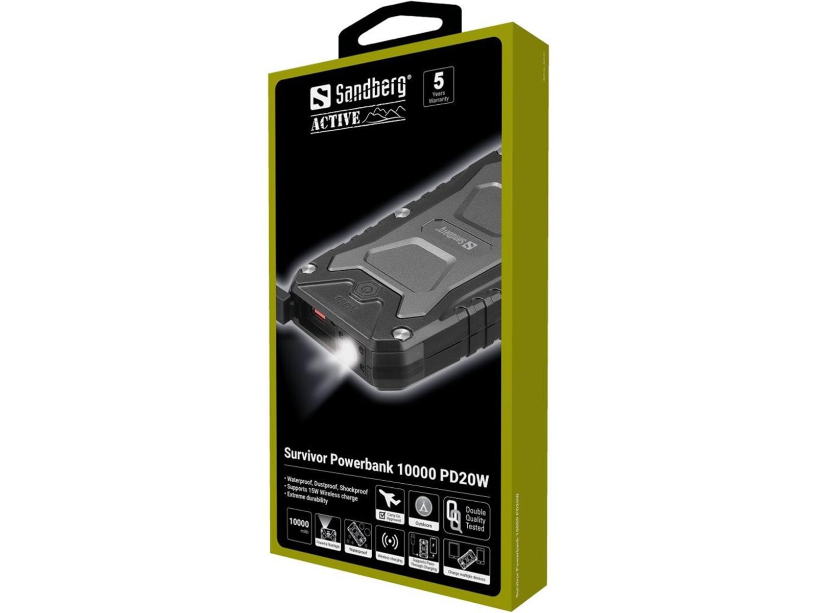 Vælg Sandberg Survivor Powerbank 10000 PD20W, hvis du vil have en kraftfuld, holdbar og hurtig oplader med på farten, der klarer både hverdagens og eventyrets udfordringer.