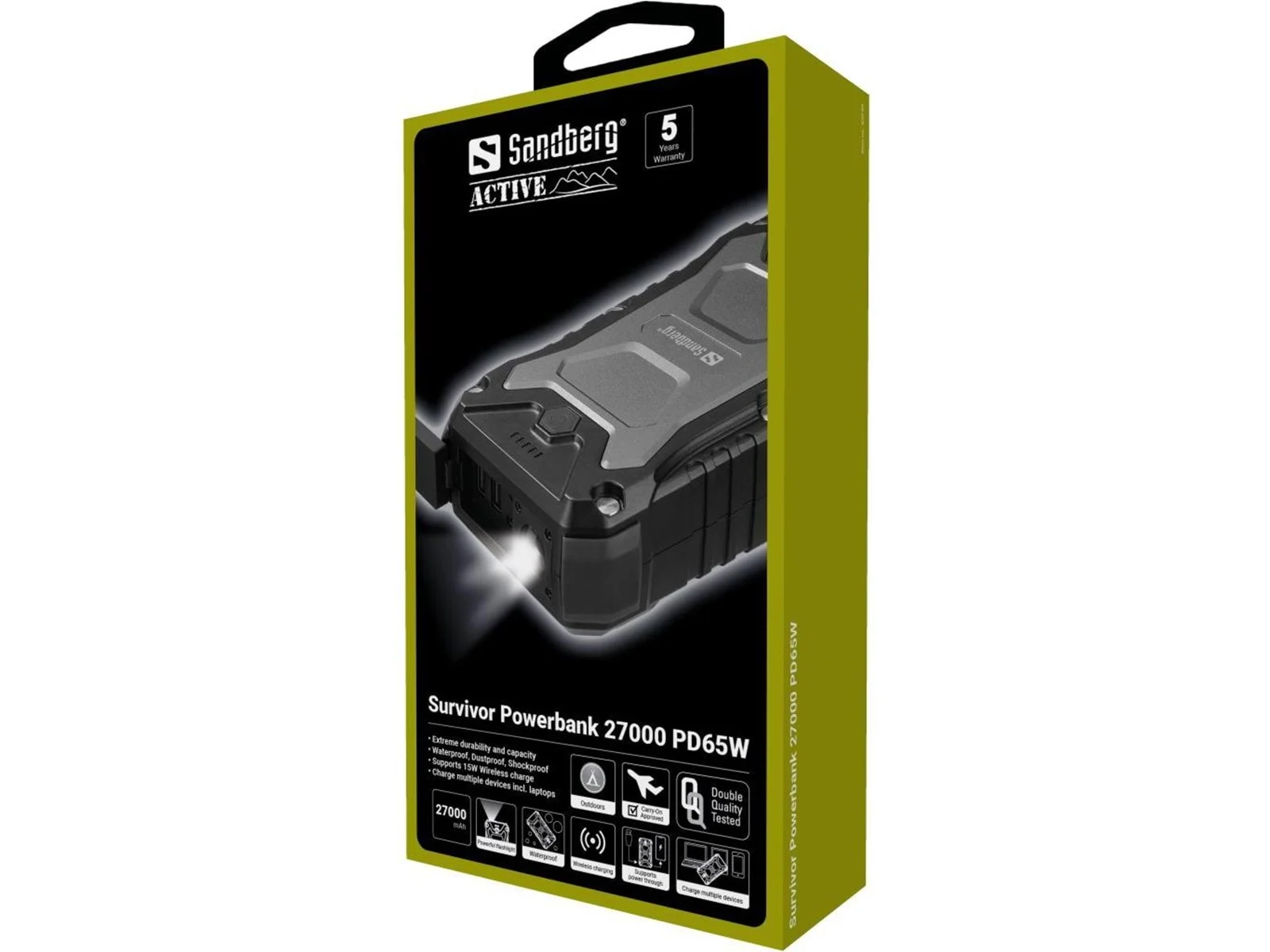 Sandberg Survivor Powerbank 27000 PD65W – kraftfuld og robust opladning på farten