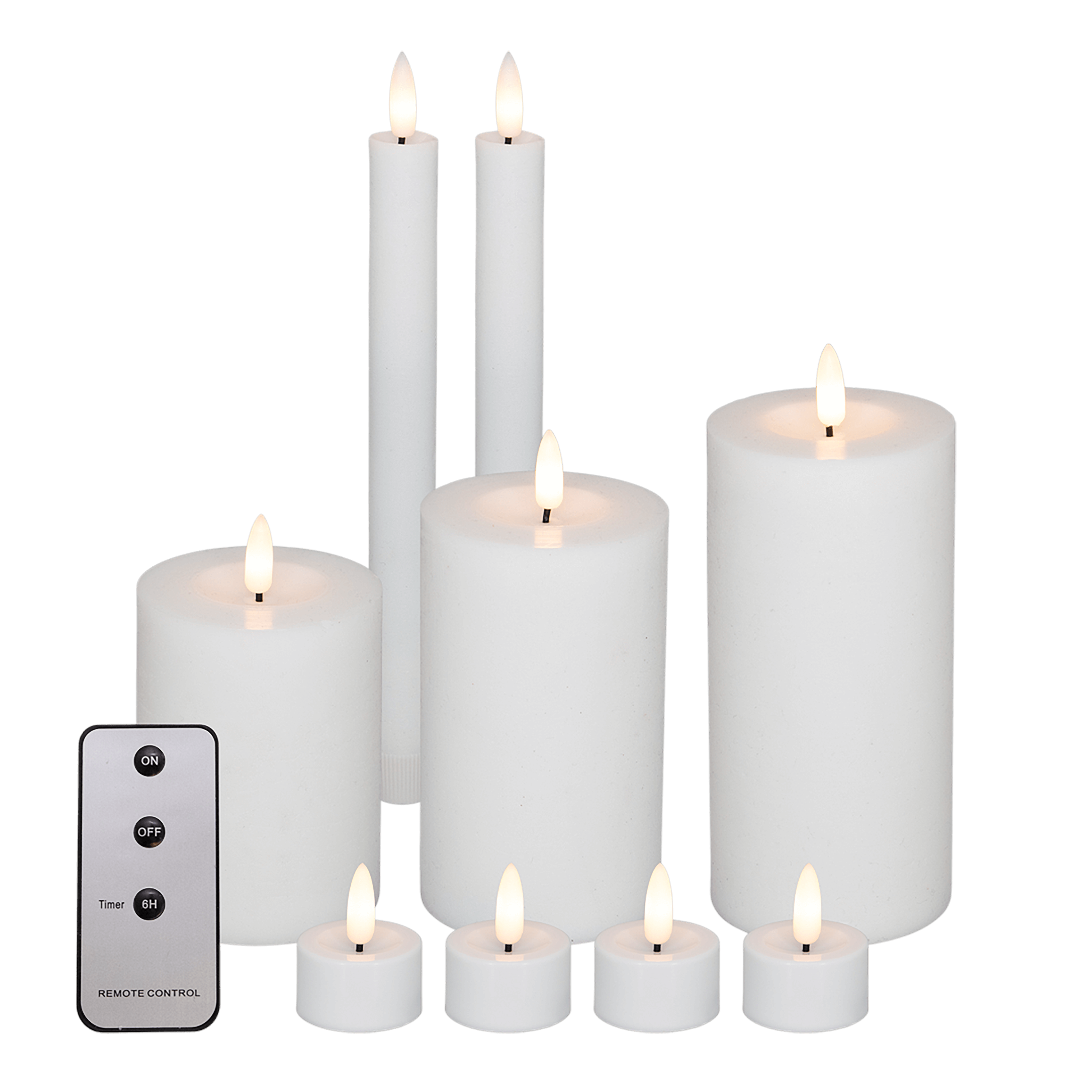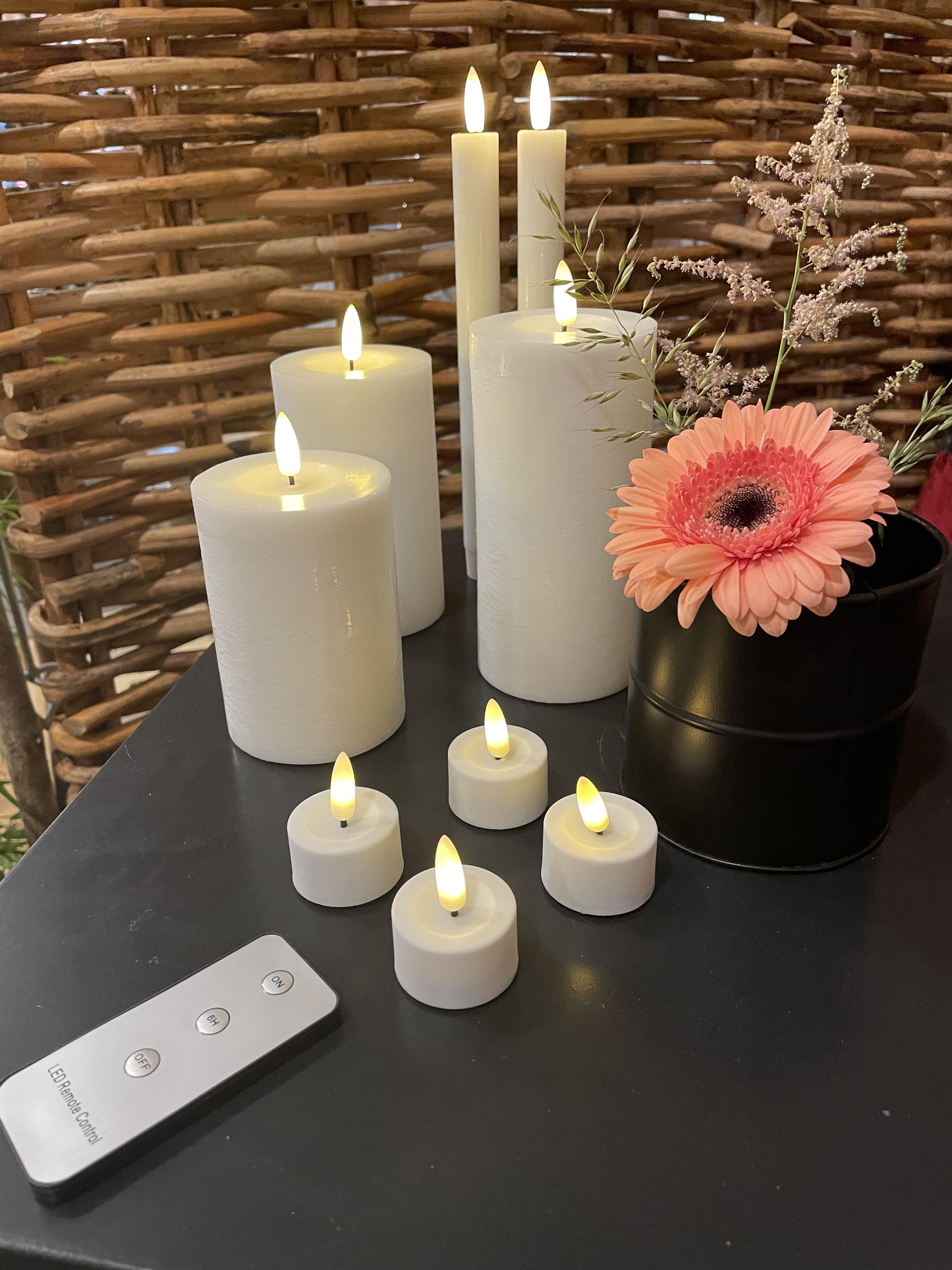 - 3 x bloklys H: 10, 12 og 15 cm (dia. 7,5 cm) eksl batterier 2xAA pr. lys.