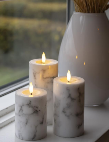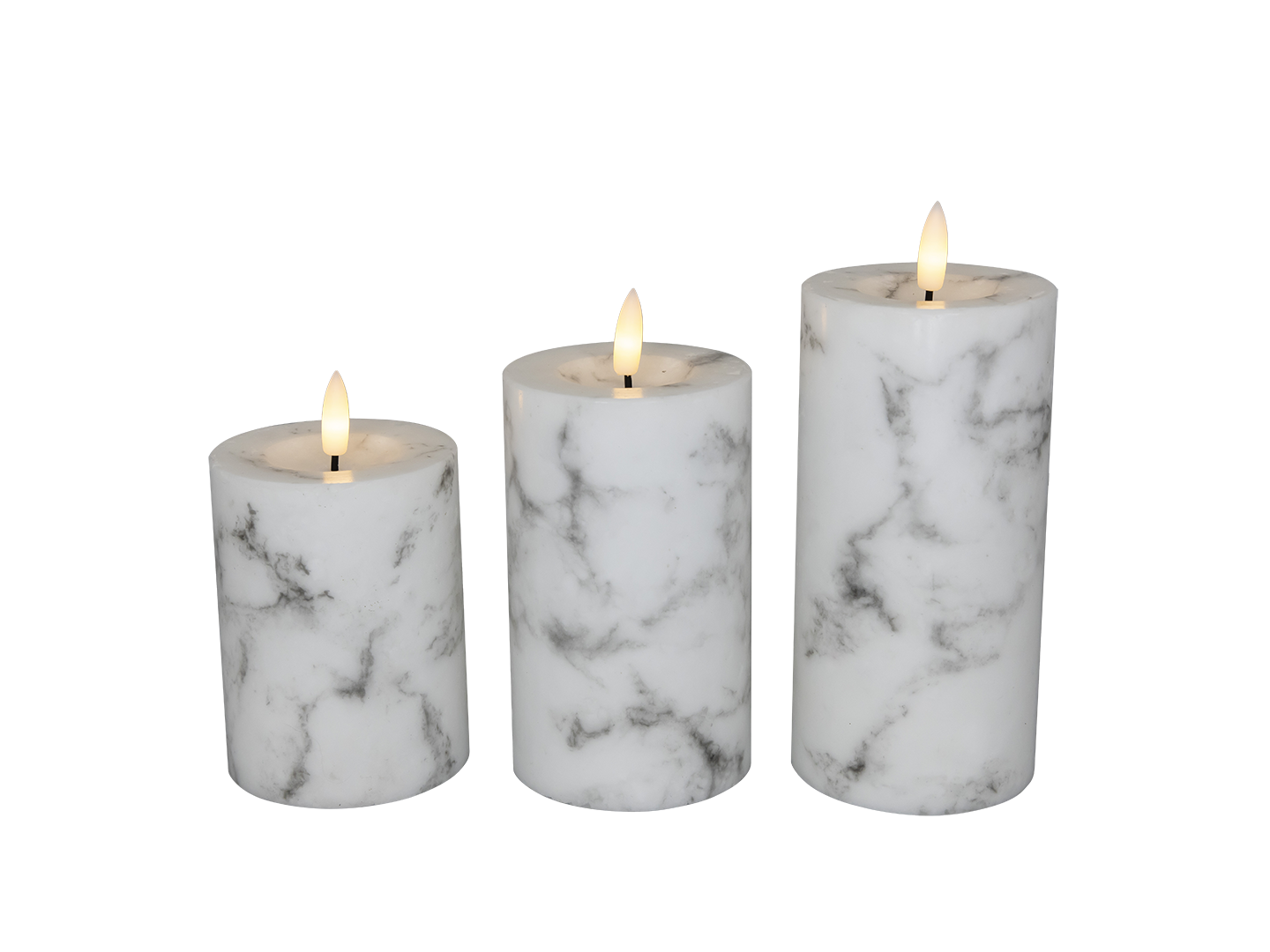 LED bloklys, hvid marmor, 3 pak inkl. fjernbetjening