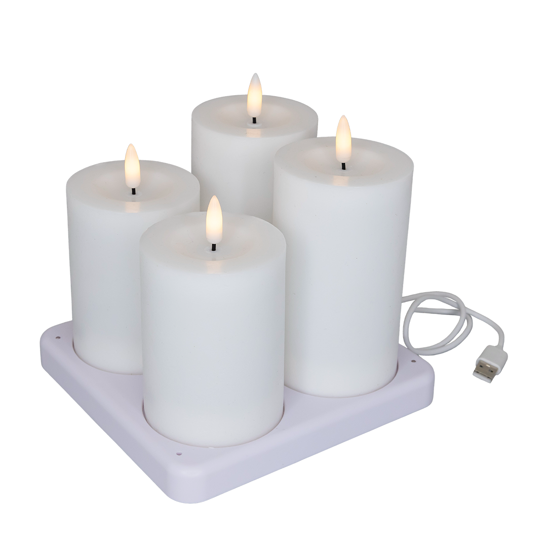LED bloklys i hvid – sæt med 4 genopladelige lys til stemningsfuld belysning