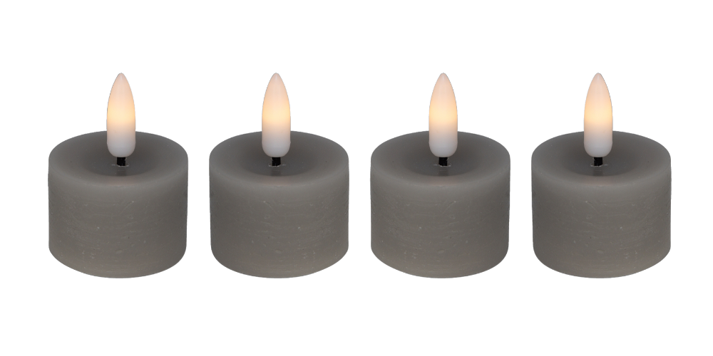 LED fyrfadslys i stearin, grå, 4 stk. – stemningsfuld belysning uden besvær