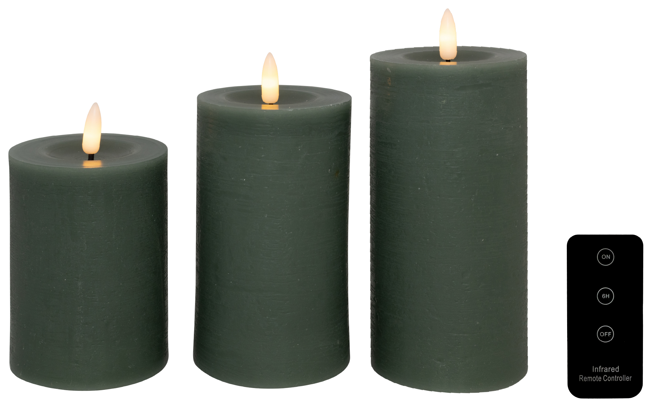 LED bloklys i grøn – 3-pak med praktisk fjernbetjening