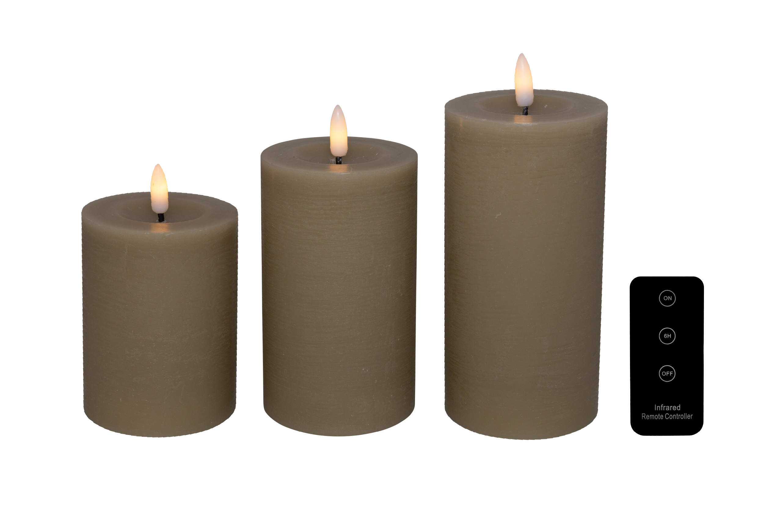 LED bloklys i sandfarvet design – 3-pak med fjernbetjening for nem betjening