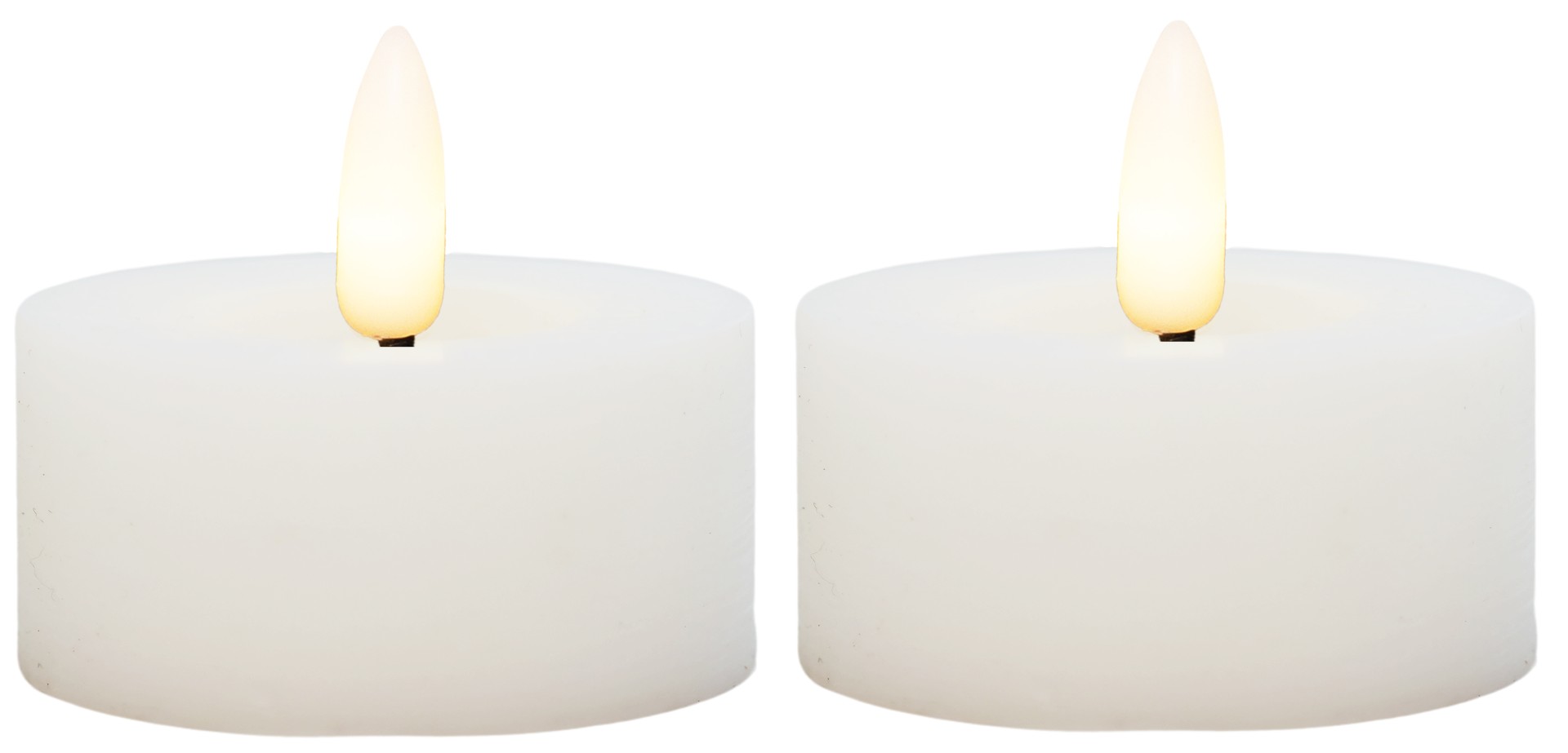 LED fyrfadslys (store) i stearin, hvid, 2 stk