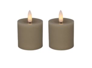 LED mini bloklys 4,8x5 cm i sandfarve – 2 stk med praktisk timerfunktion