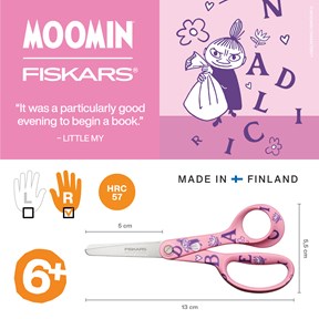 Fiskars Moomin børnesaks Lille My ABC – sikker og sjov saks til små hænder