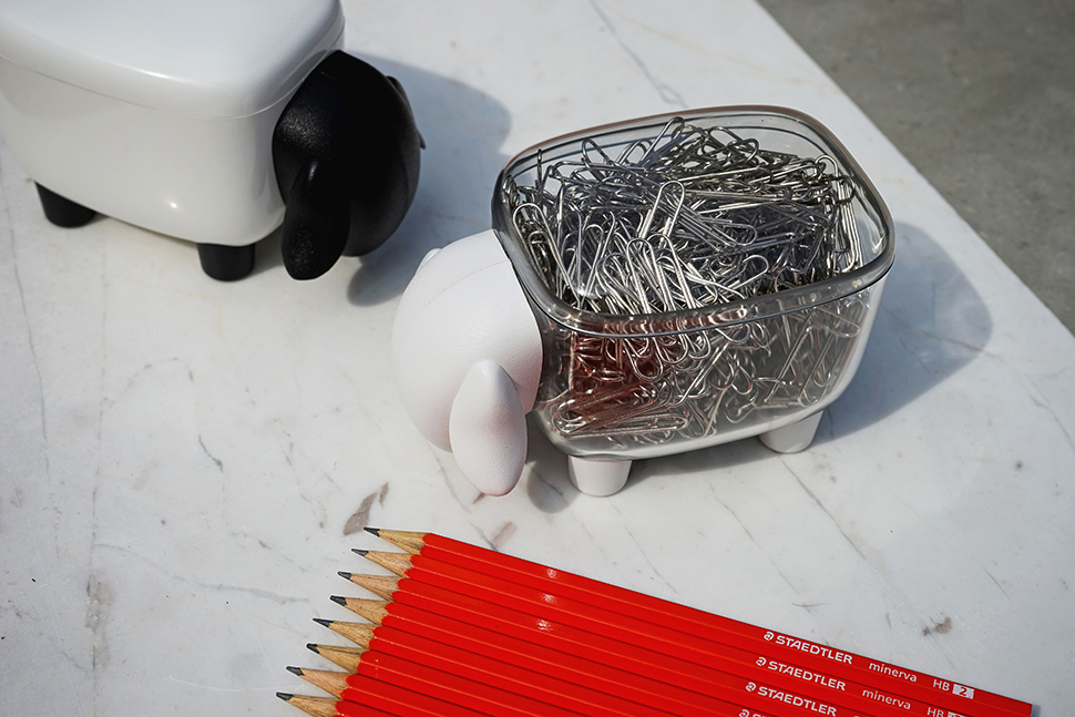 Med sit bløde og runde fåreformede design skiller containeren sig ud fra traditionelle opbevaringsløsninger. Den er både dekorativ og praktisk, hvilket gør den ideel til både børneværelset, kontoret eller entréen. Den kompakte størrelse gør den let at placere på hylder, borde eller i skabe, hvor den holder styr på småting uden at fylde for meget.