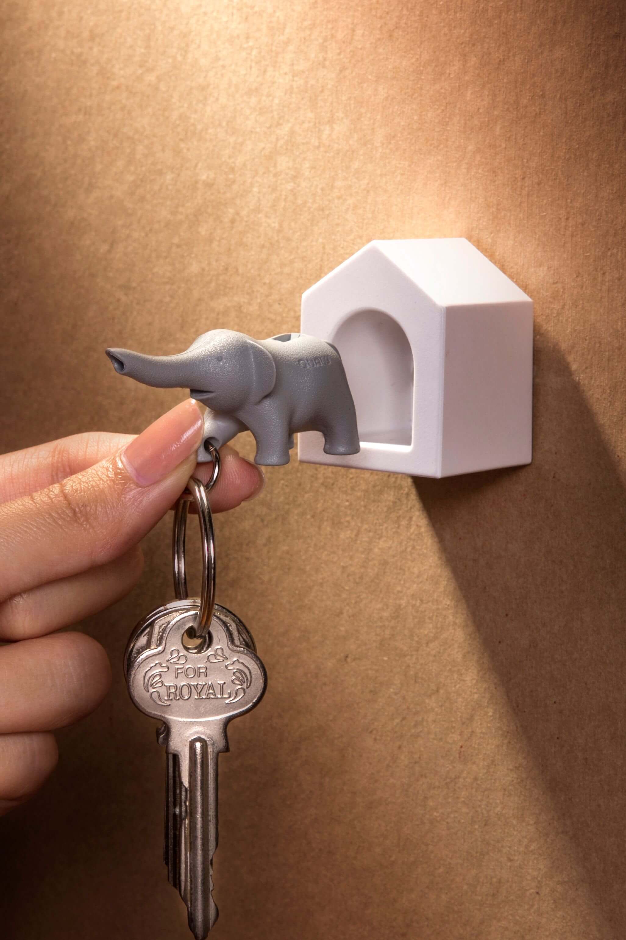 Qualy design Hvid Nøgleholder med Grå Elefant – sjov og praktisk opbevaring