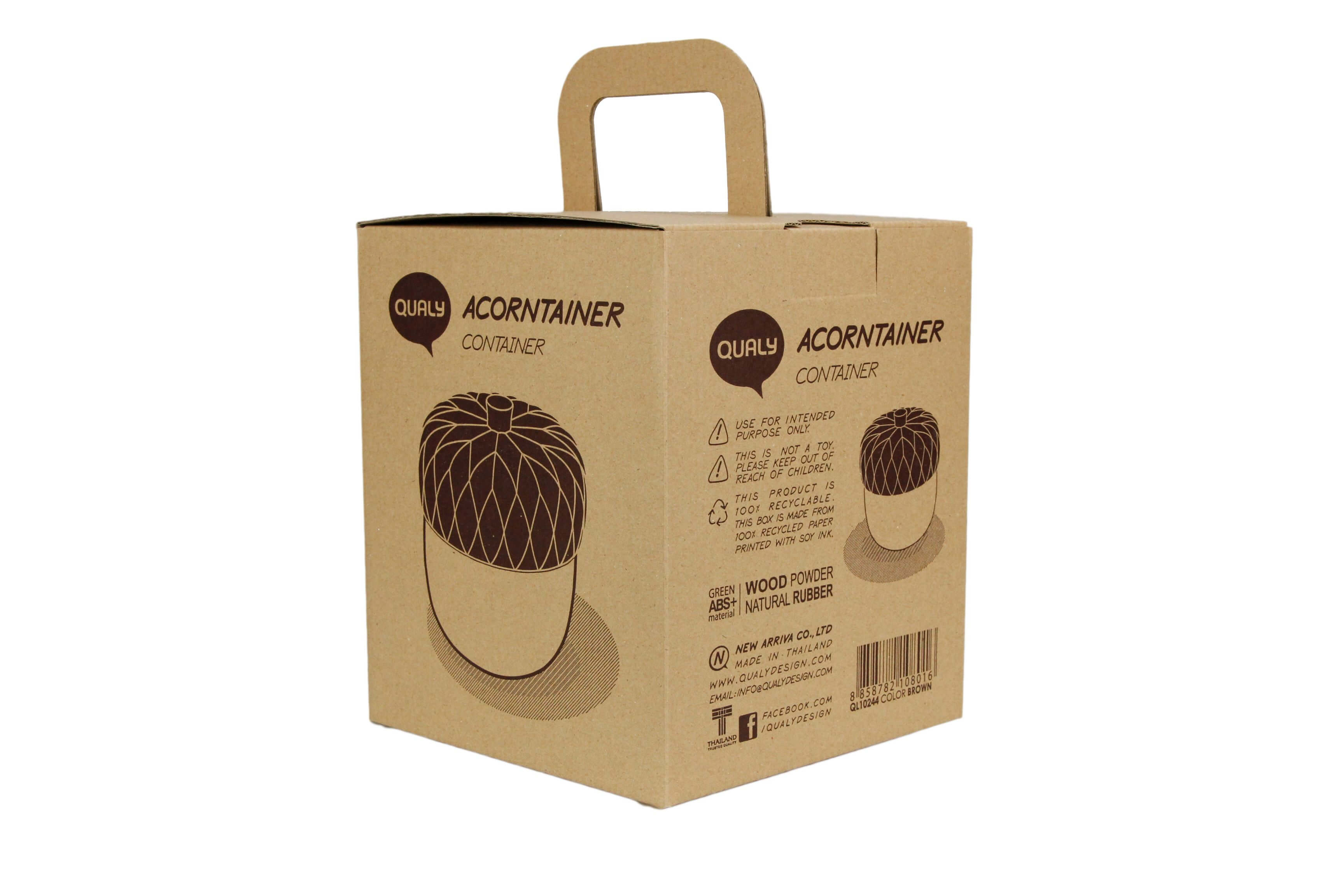 Vælg Qualy Acorntainer i brun, hvis du vil have en sjov, praktisk og dekorativ løsning til opbevaring, der bringer et strejf af natur ind i din hverdag.