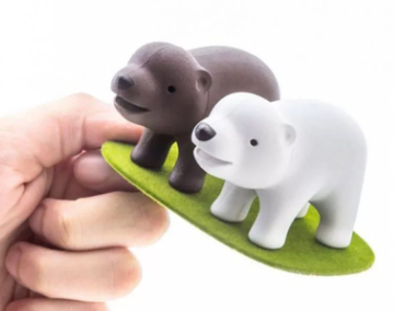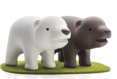 - Design: To søde bjørnefigurer med bløde, venlige former