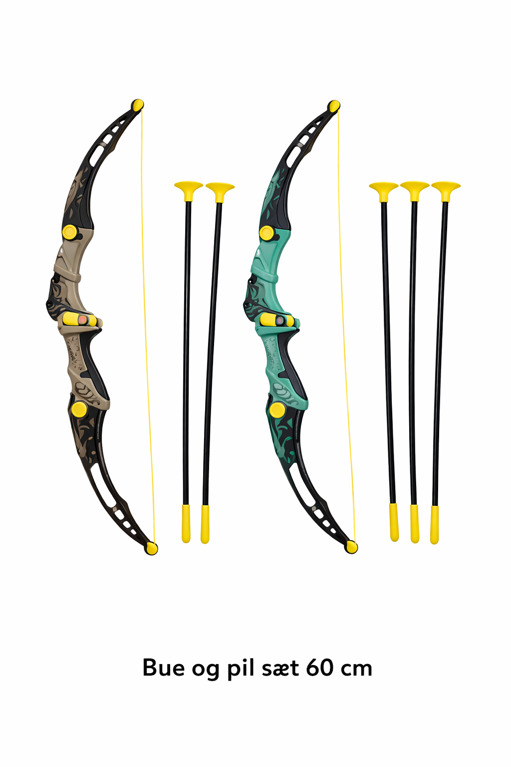 Bue og pil sæt på 60 cm med 3 sugekop-pile, perfekt til sjov og aktiv leg. Den lidt mindre størrelse gør sættet nemt at håndtere og ideelt til både begyndere og dem, der vil øve præcision og koordination.