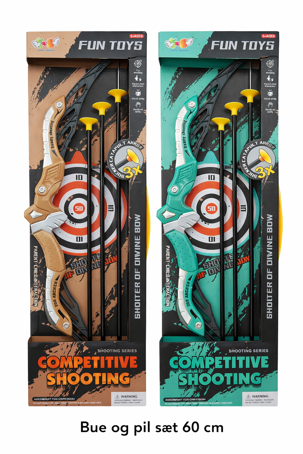 For sikker og tryg leg anbefales det ikke at rette pilene mod ansigt eller øjne. Bør anvendes under opsyn af en voksen og med de medfølgende pile.