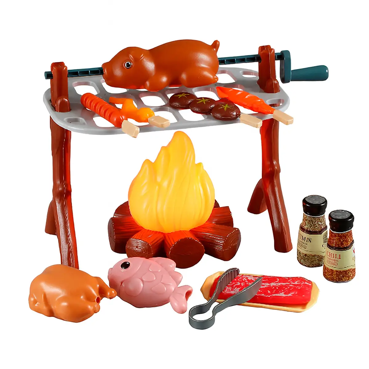 Giv børnene en sjov og lærerig udendørs oplevelse med Campfire Camping Set, et legetøjs bål- og grilllegesæt, der giver dem mulighed for at lege camping i haven eller børneværelset. Sættet inkluderer legetøjsbål med lys, grillstativ, drejelig grillspyd, forskellige typer legetøjsmad såsom fisk, kød, pølser og tilbehør, så børn kan grille, servere og lege campingliv.